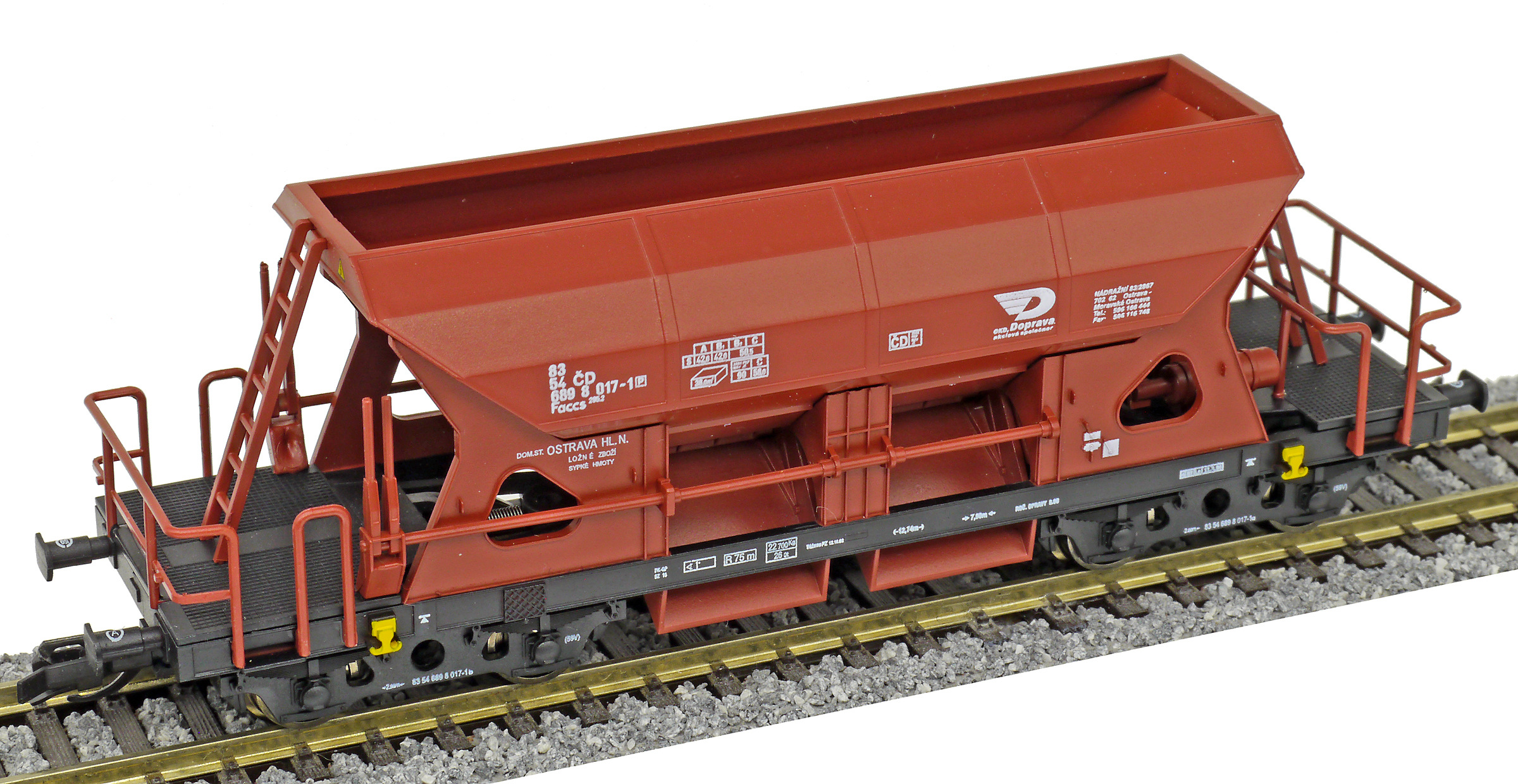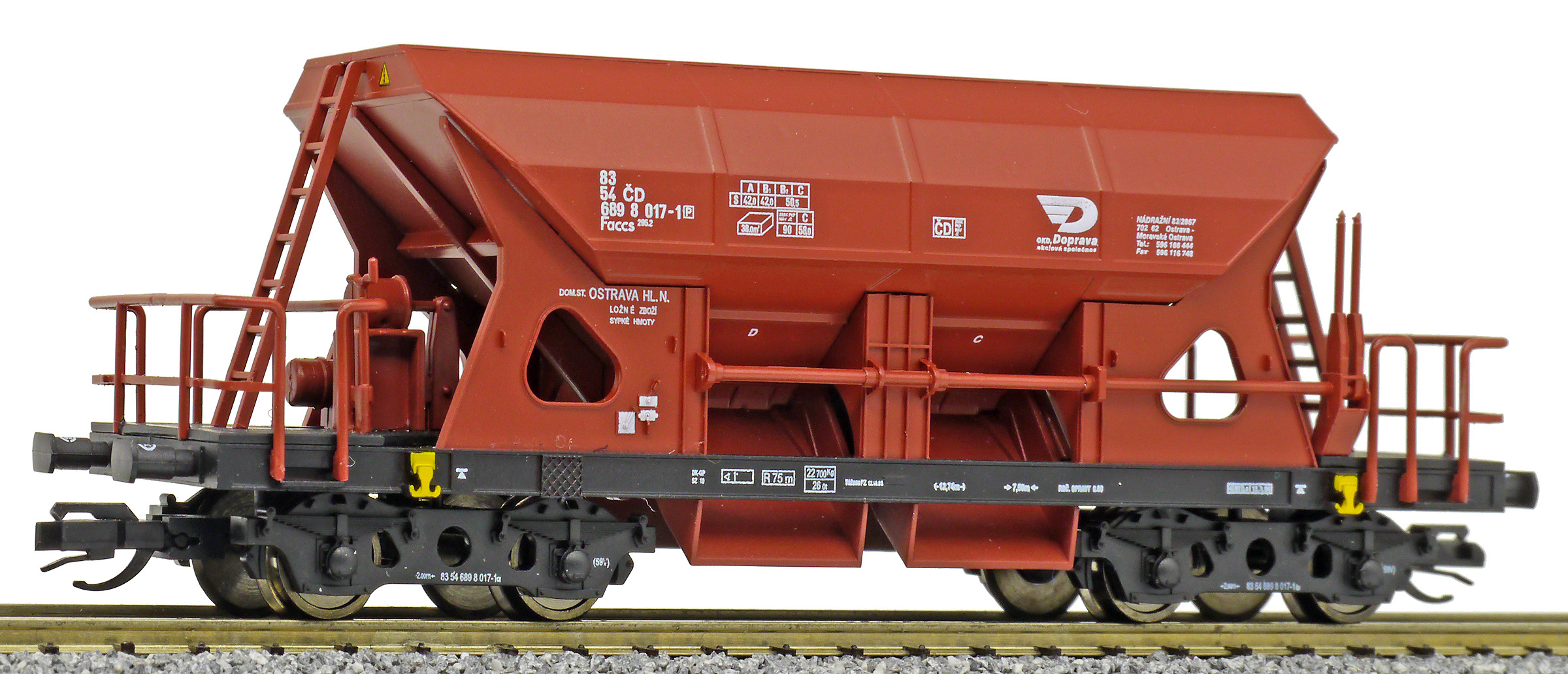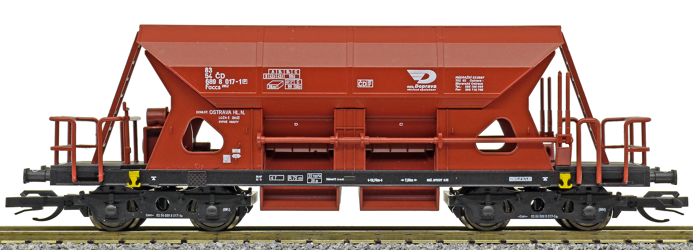 Popis   nákladní samovýsypný vůz červenohnědý s černým rámem