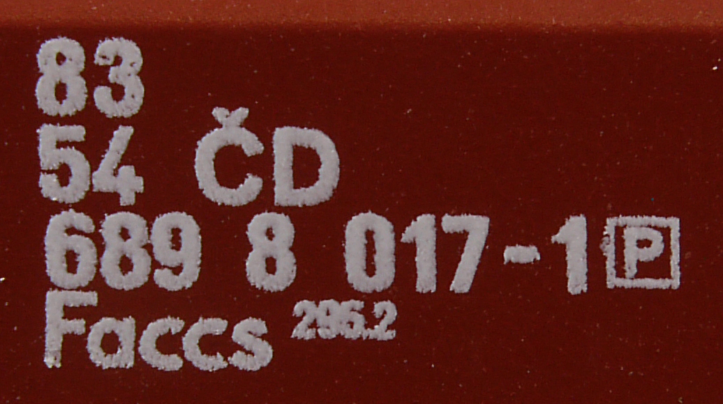 • 83 54 689 8 017-1nákladní, s podvozky, soukromý vůz, pro mezinárodní dopravu dle zvláštních úmluv
