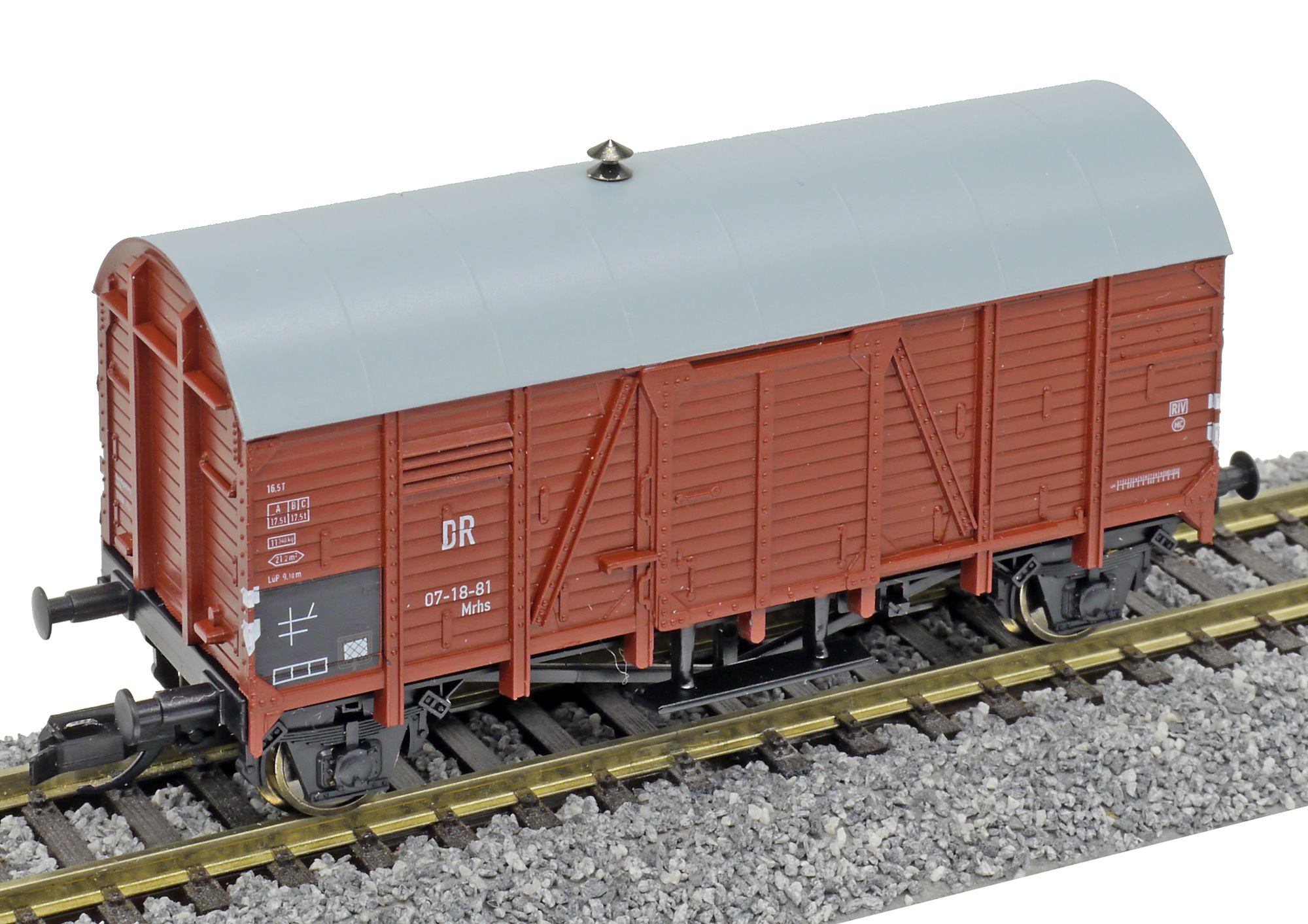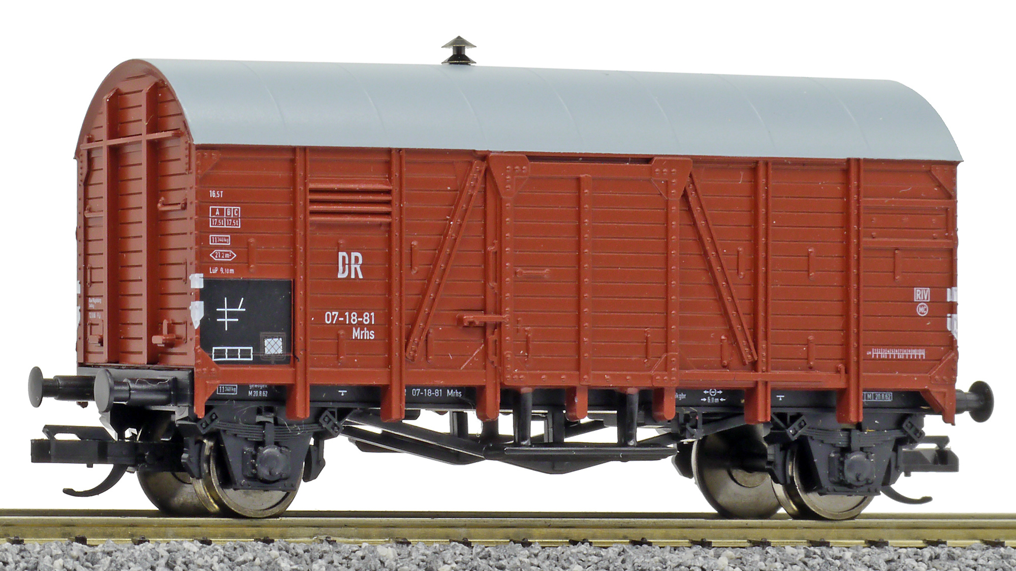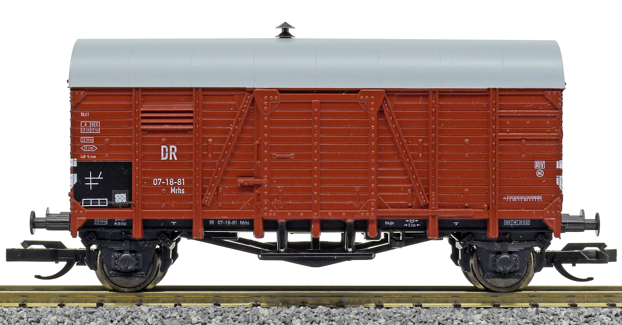 Popis   krytý nákladní vůz červenohnědý s šedou střechou