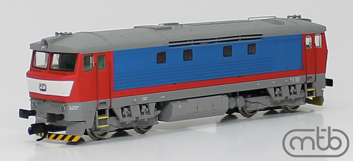 Popis   dieselová lokomotiva červená-modrá, šedá střecha a rám