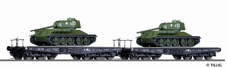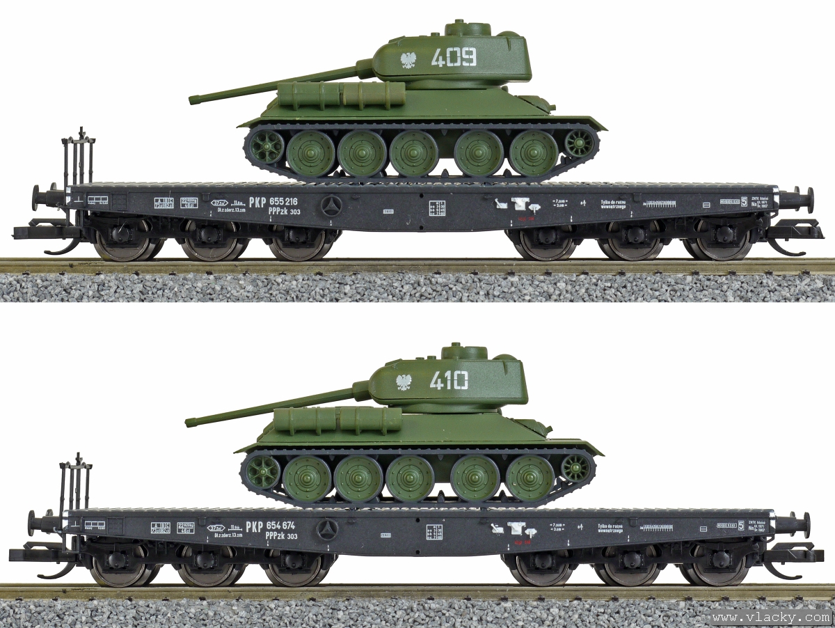 | set dvou plošinových vozů s nákladem tanků T34/85 „Militärtransport“ |