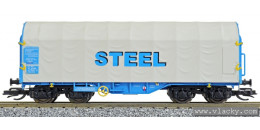| plošinových vůz modrý s plachtou „STEEL“ |