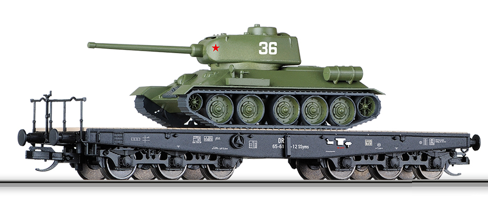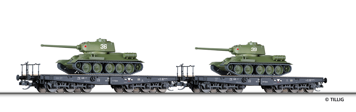 Popis   set dvou plošinových vozů s nákladem tanků T34/85