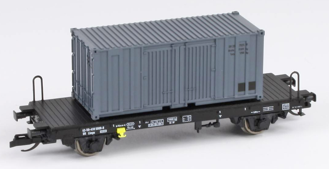 | černý plošinový s nákladem kontejneru 20' |
