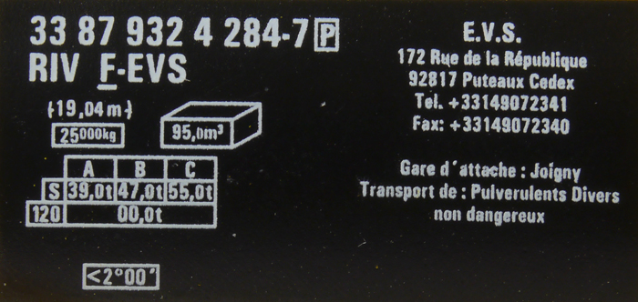 | • 33 87 932 4 284-7 | → | nákladní, s podvozky, pevný rozchod, soukromý vůz, RIV, PPV |