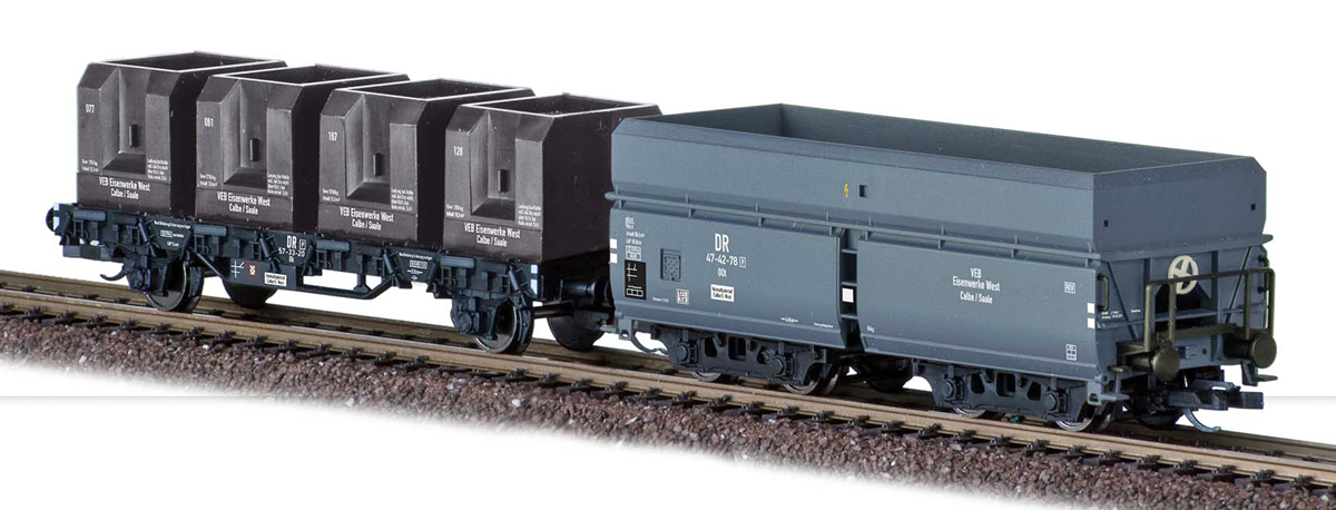 | nákladní se čtyřmi kontejnery na uhlí „VEB Eisenwerke West“ |