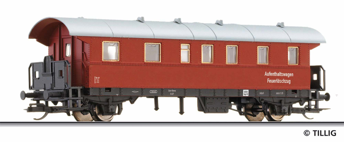 | osobní vůz červený s šedou střechou do požárního vlaku |