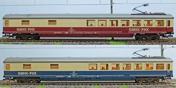 | červený-slonová kost, šedá střecha s pantografem, jídelní vůz „QuickPick“ |