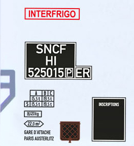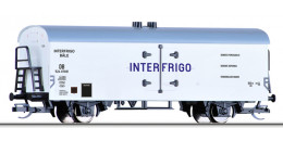 | bílý chladící vůz s šedou střechou „INTERFRIGO“ |