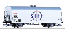 | bílý chladící vůz s šedou střechou „STEF“ |