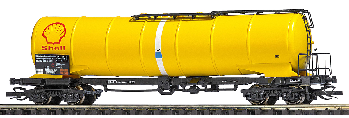 | žlutý cisternový vůz s logem „Shell“ |