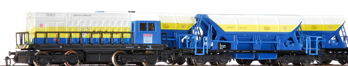 set dieselové lokomotivy řady 720 a tří samovýsypných vozů