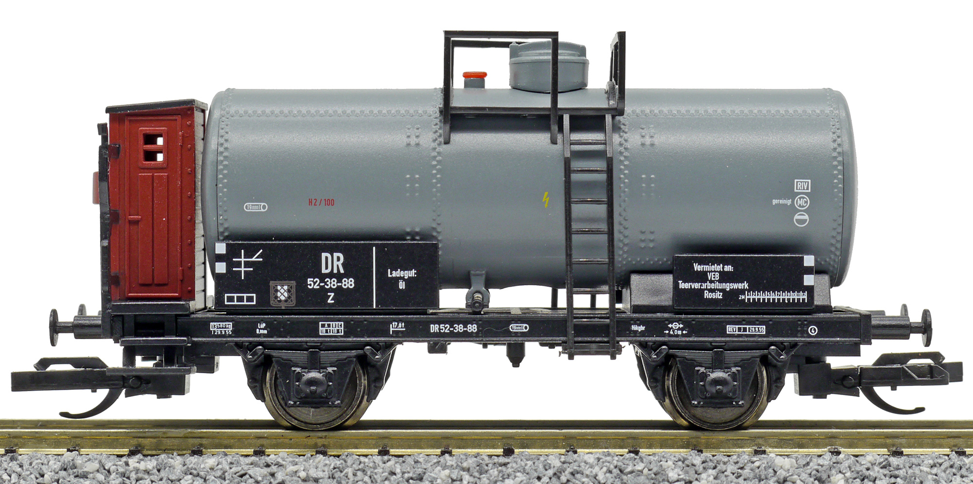 | cisternový vůz světle šedý s brzdařskou budkou |