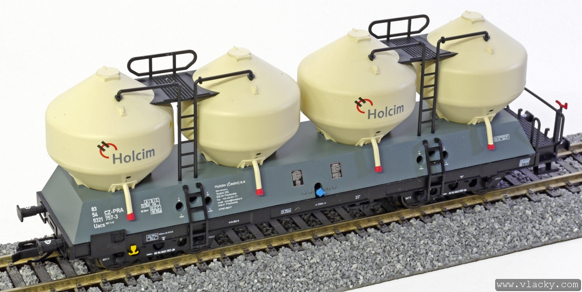 | nákladní samovýsypný vůz šedý s nádobami „Holcim“ |
