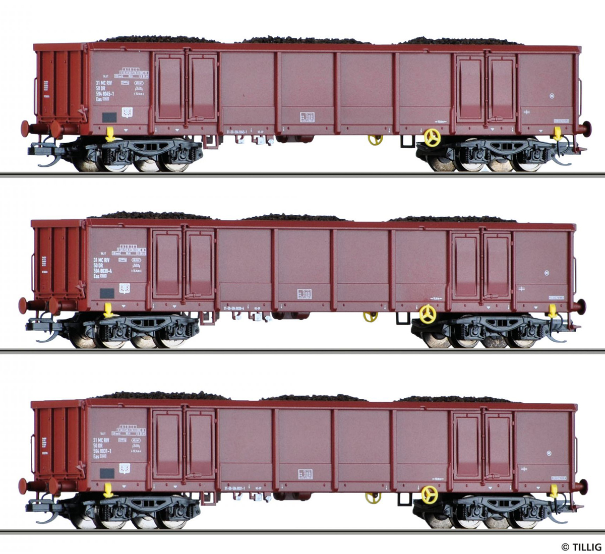 | set tří nákladních otevřených vozů s nákladem uhlí |