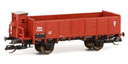 | otevřený nákladní vůz červenohnědý s brzdařskou budkou |