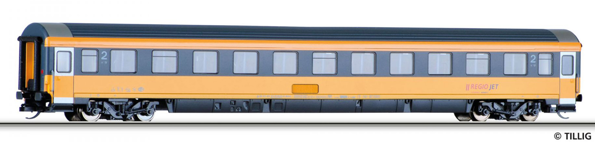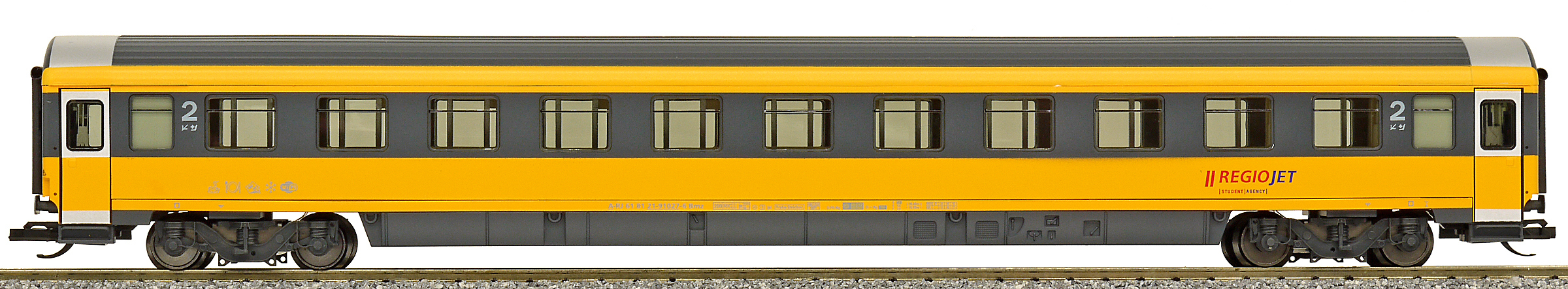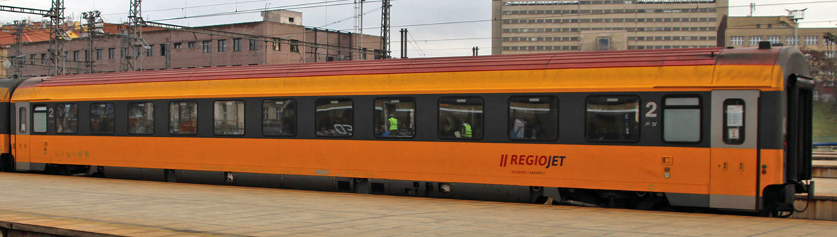 | rychlíkový vůz v barvách „RegioJet“ 2. tř. |