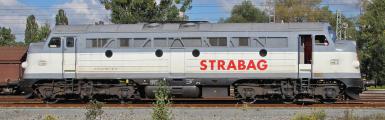 Popis   dieselová lokomotiva bílá-šedá „STRABAG“