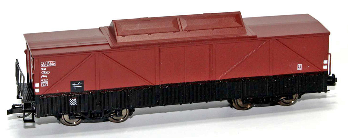 | otevřený nákladní vůz červenohnědý se zakrytím |
