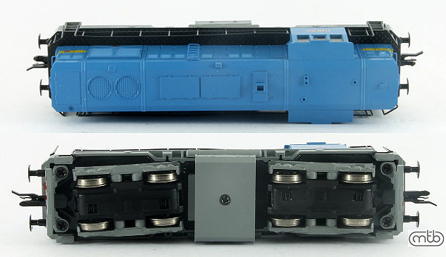 měřítko 1:120 - rozchod kolejí 12 mm osvětlení - 3 reflektory vpředu, 2 světla vzadu, přepínatelné podle směru jízdy 4 hnané nápravy 0 bandážovaných náprav kinematika krátkého spřáhla (KKK) podle normy NEM 358 digitální rozhraní podle NEM 662 s konektorem Next18 setrvačník 112 mm - celková délka modelu přes nárazníky 4 - celkový počet náprav nebo rozložení náprav