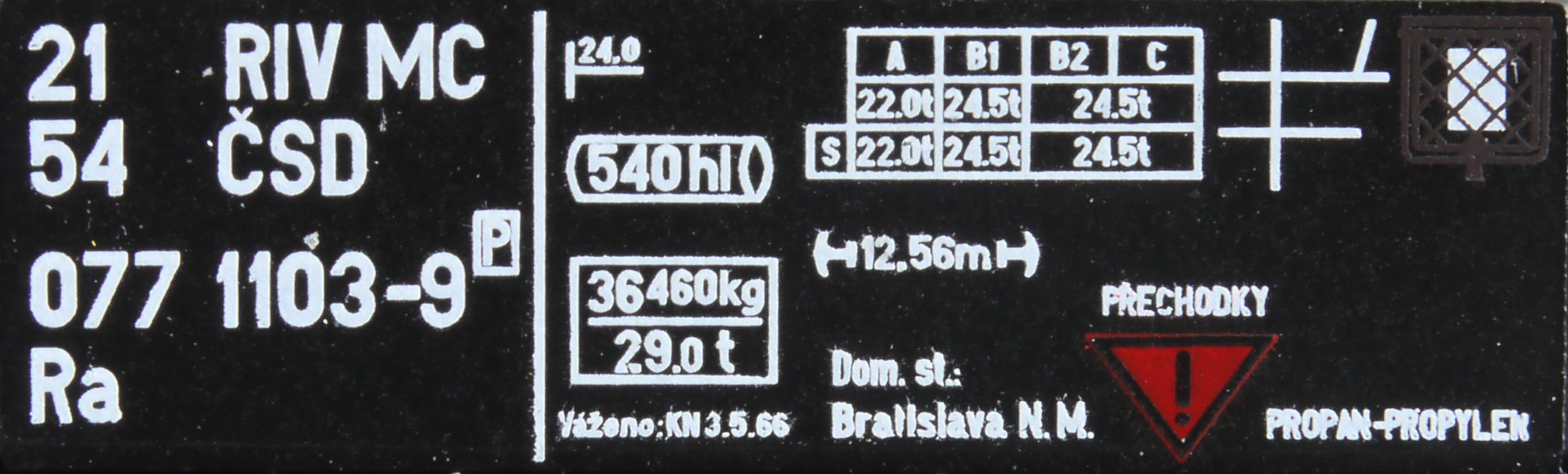 | • 21 54 077 1103-9 | → | ČSD - Československé státní dráhy |