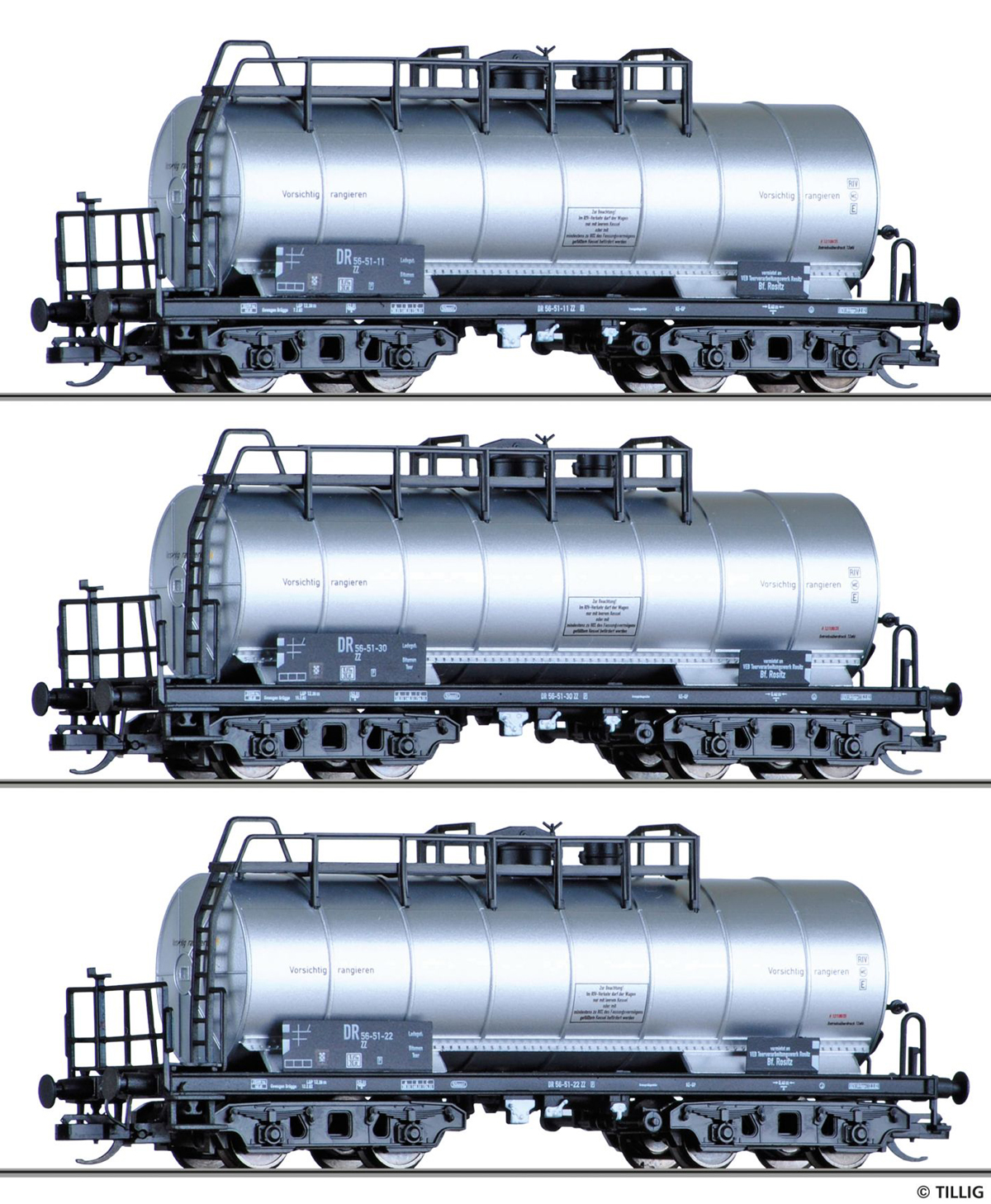 | set tří kotlových vozů „VEB Teerverarbeitung Rositz“ |
