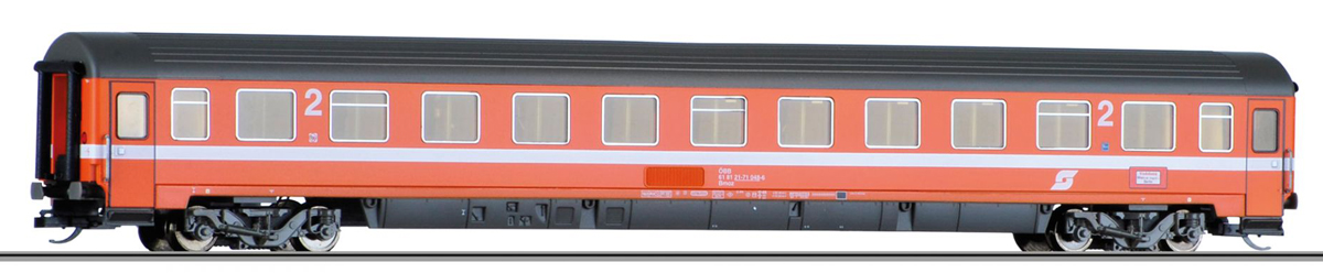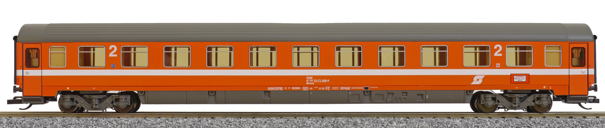 | rychlíkový vůz oranžový s šedou střechou 2. tř. |
