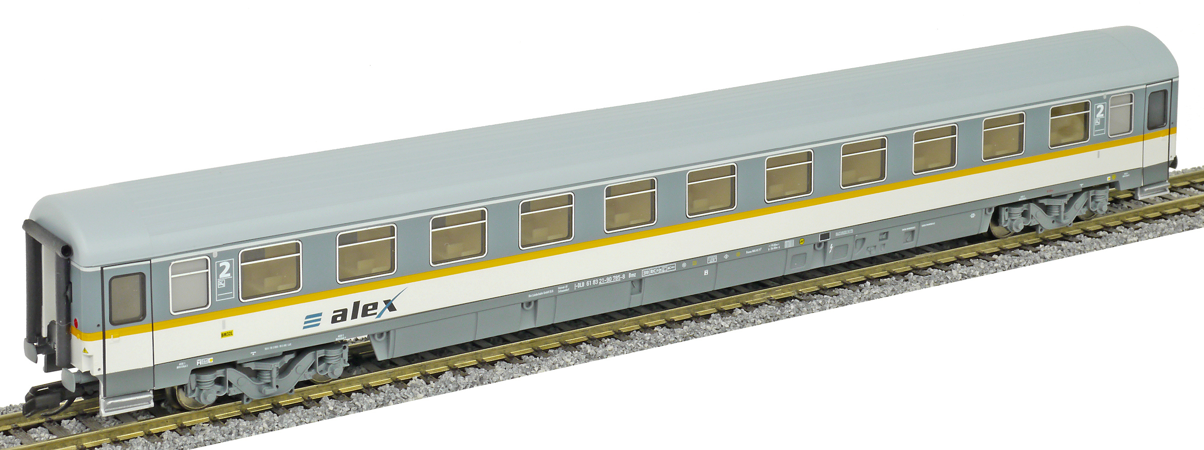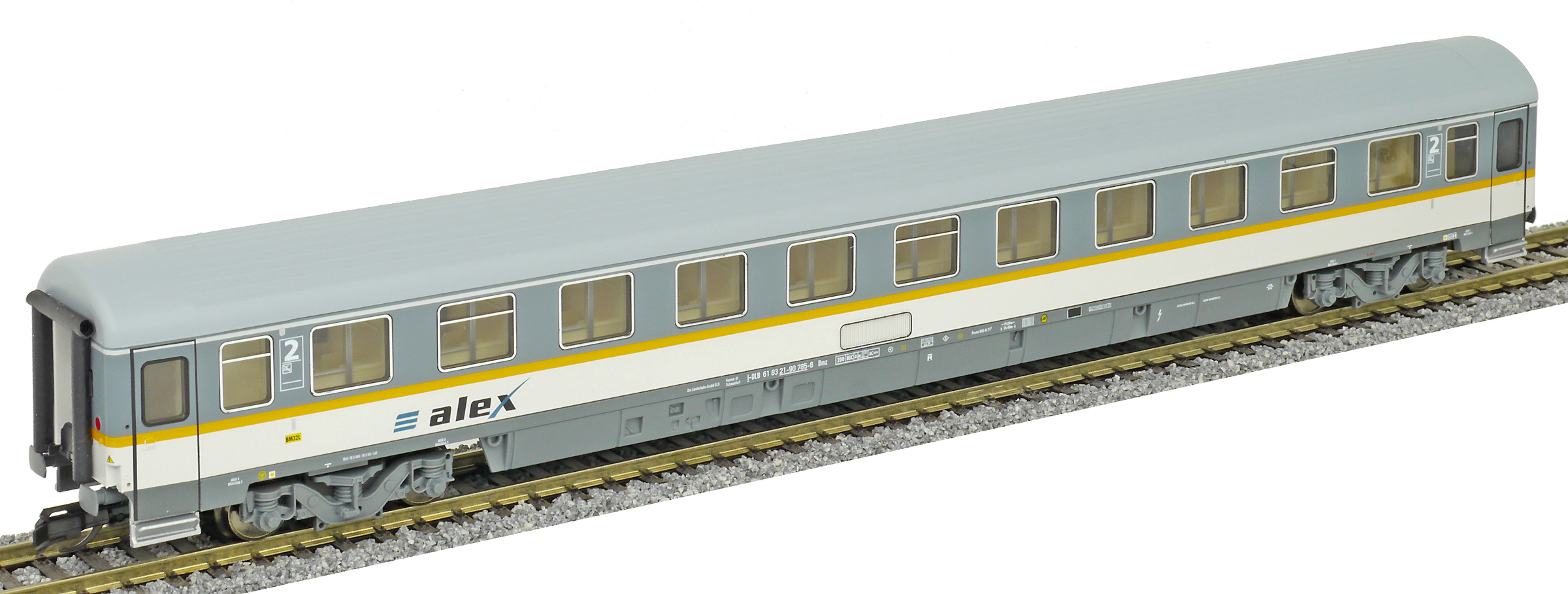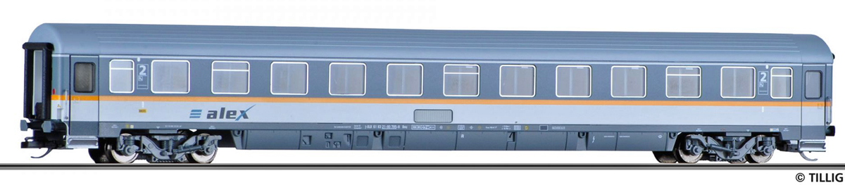 | rychlíkový vůz v barevném schematu „alex“ 2. tř. |