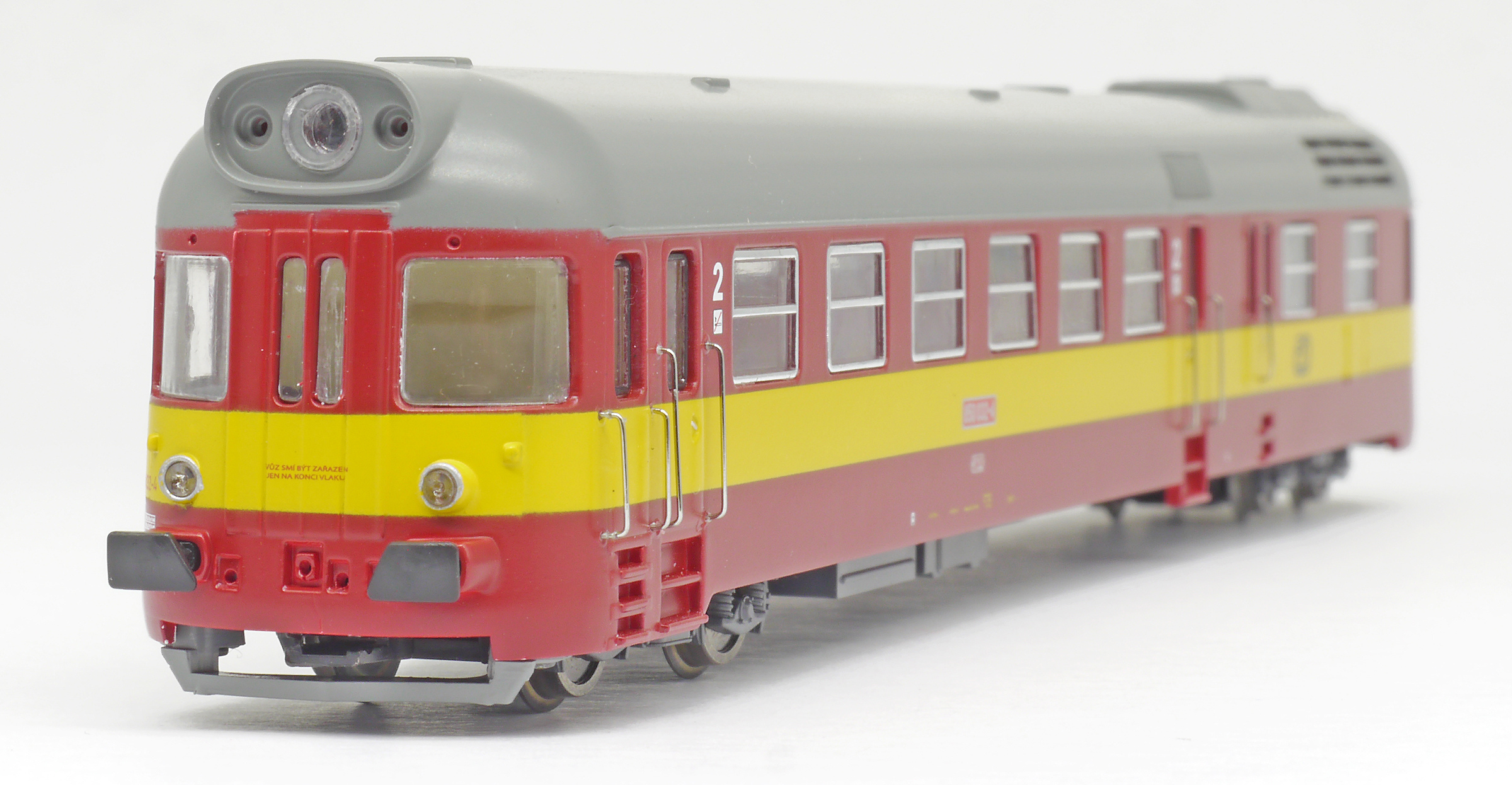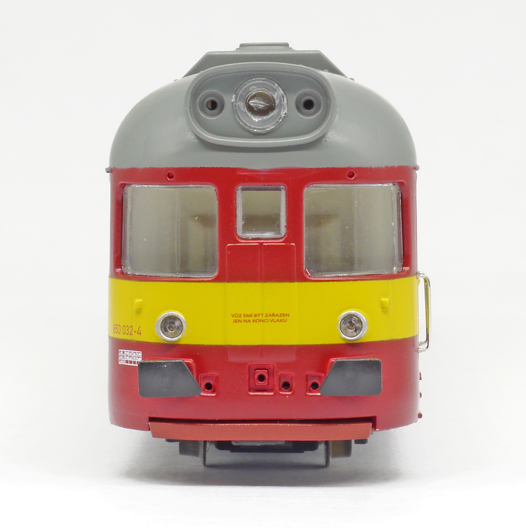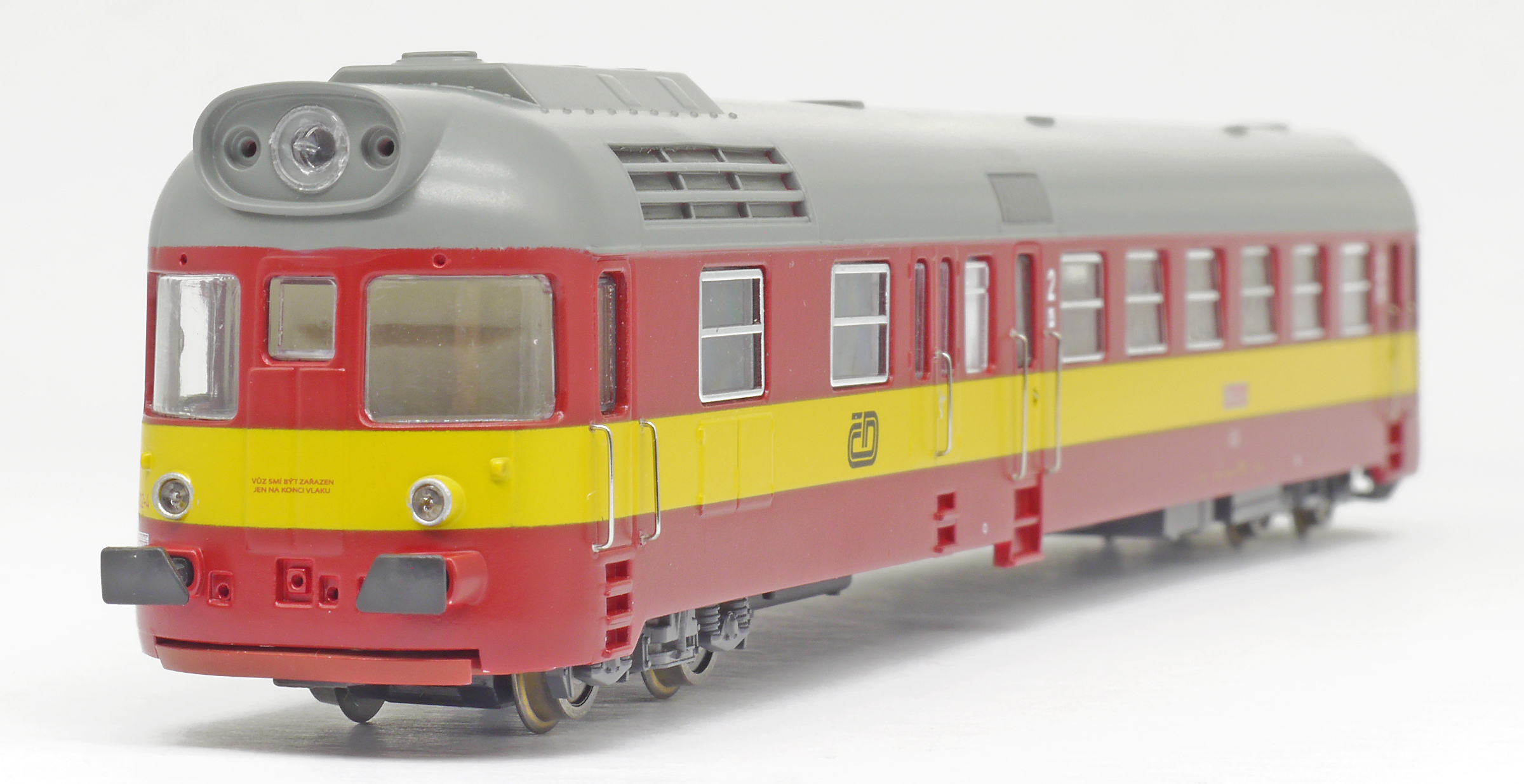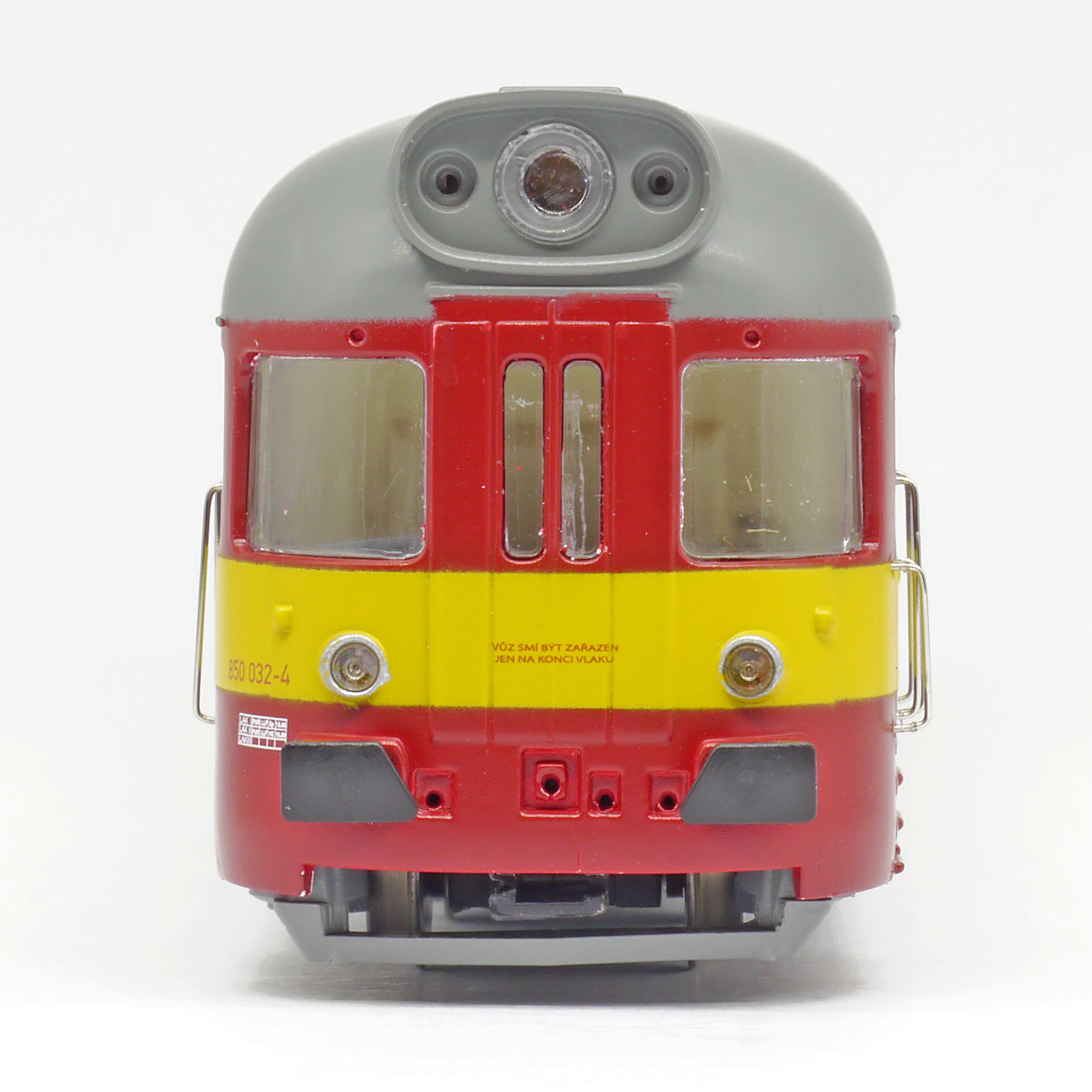 | motorový vůz červený s výstražným žlutým pruhem |