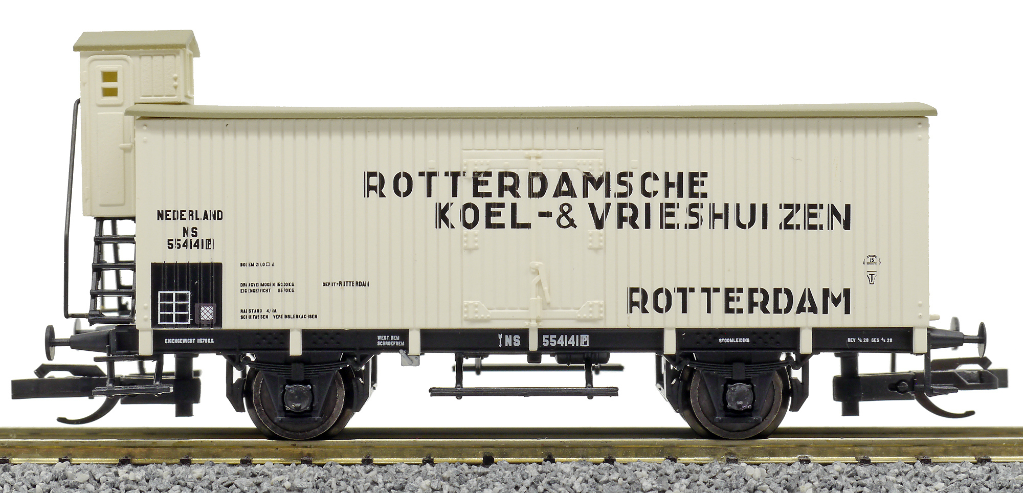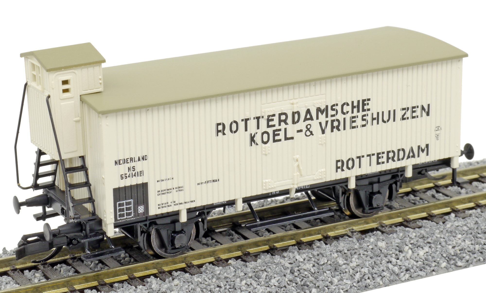 | chladicí vůz bílý s šedou střechou „Rotterdamsche Koel- & Vrieshuizen“ |