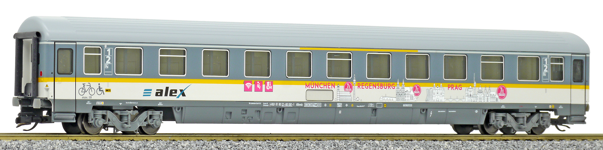 | rychlíkový vůz v barevném schematu „alex“ 1./2. tř. |