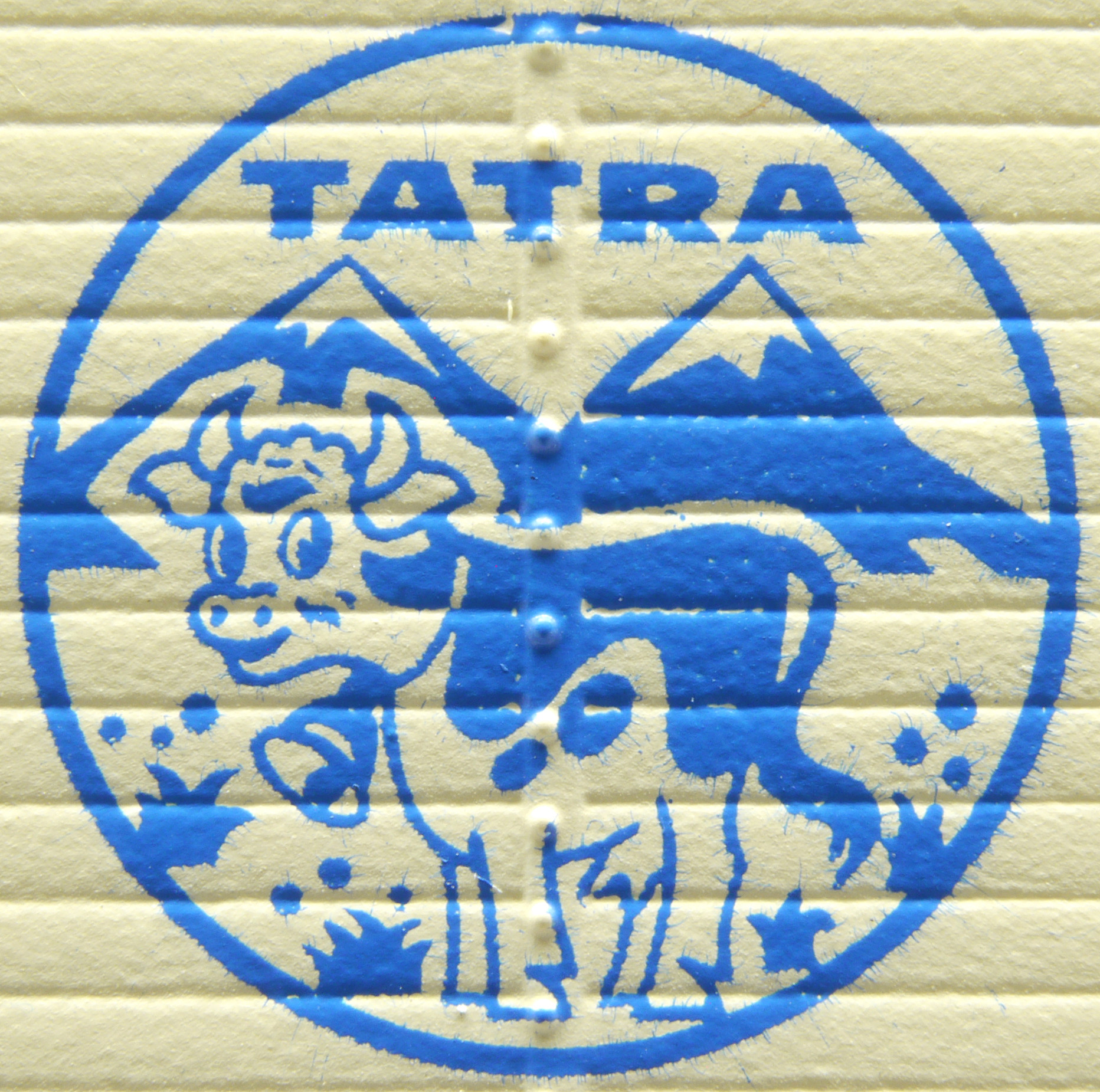 | krytý nákladní vůz bílý s šedou střechou a logem „TATRA“ |