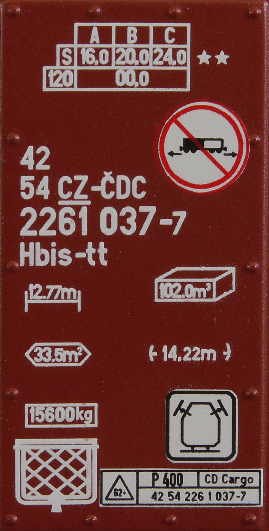 | • 42 54 2261 037-7 | → | H - krytý vůz zvláštní stavby |