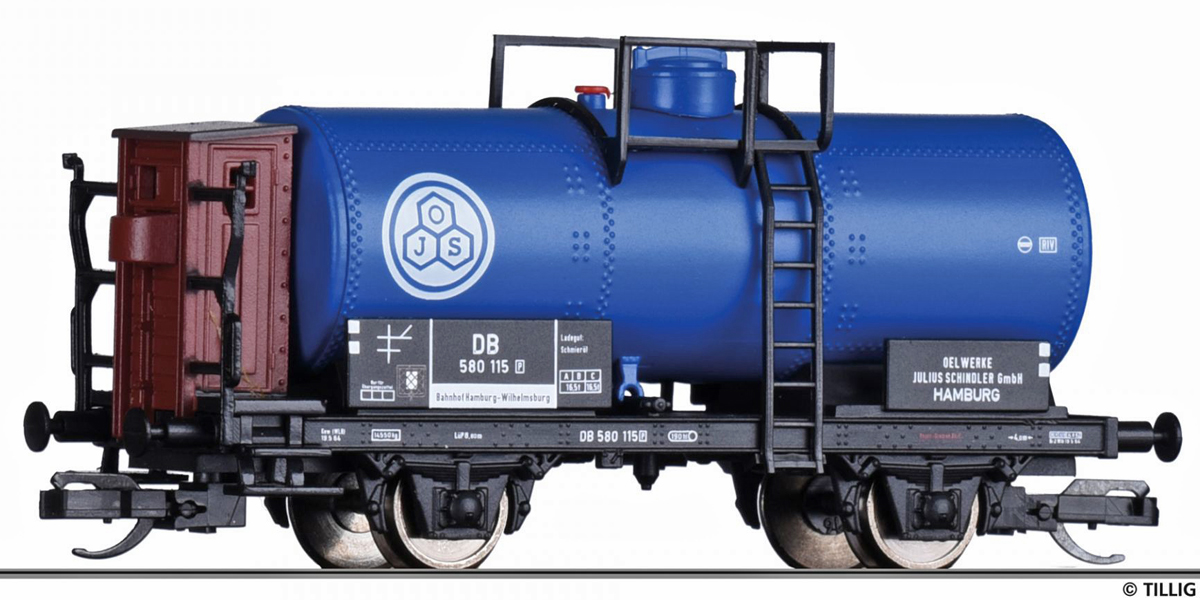 | kotlový vůz modrý s brzdařskou budkou „Ölwerke J. Schindler“ |