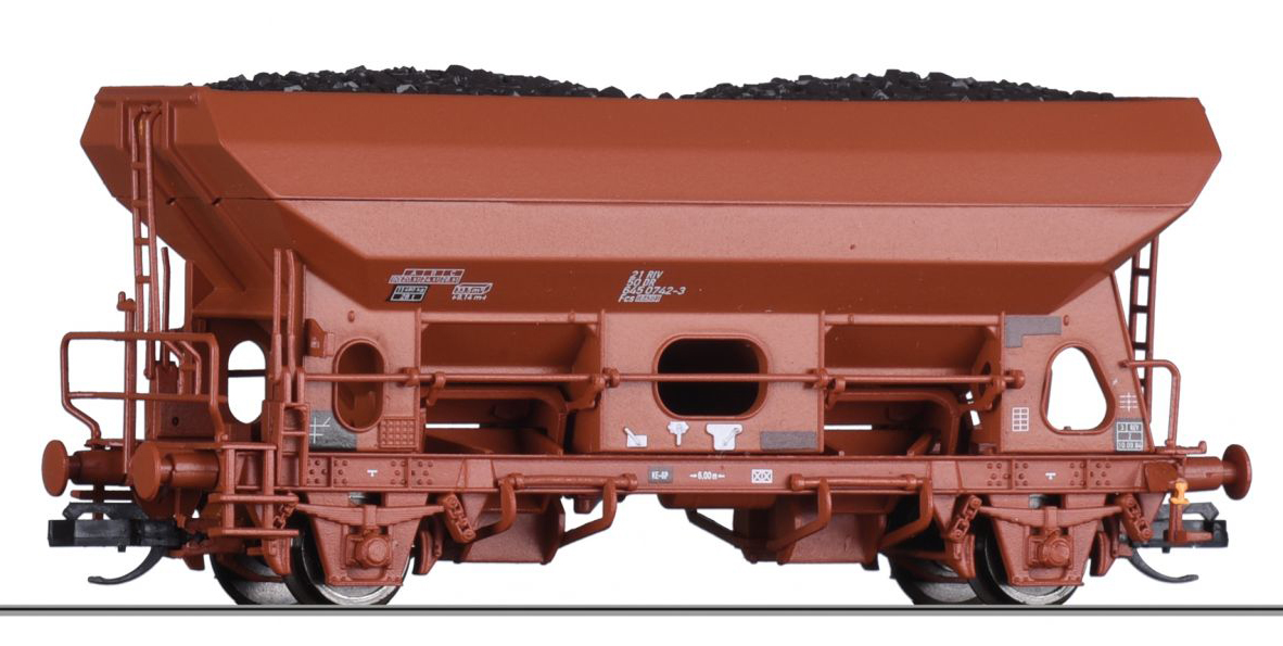 | samovýsypný vůz tmavě hnědý s nákladem uhlí |