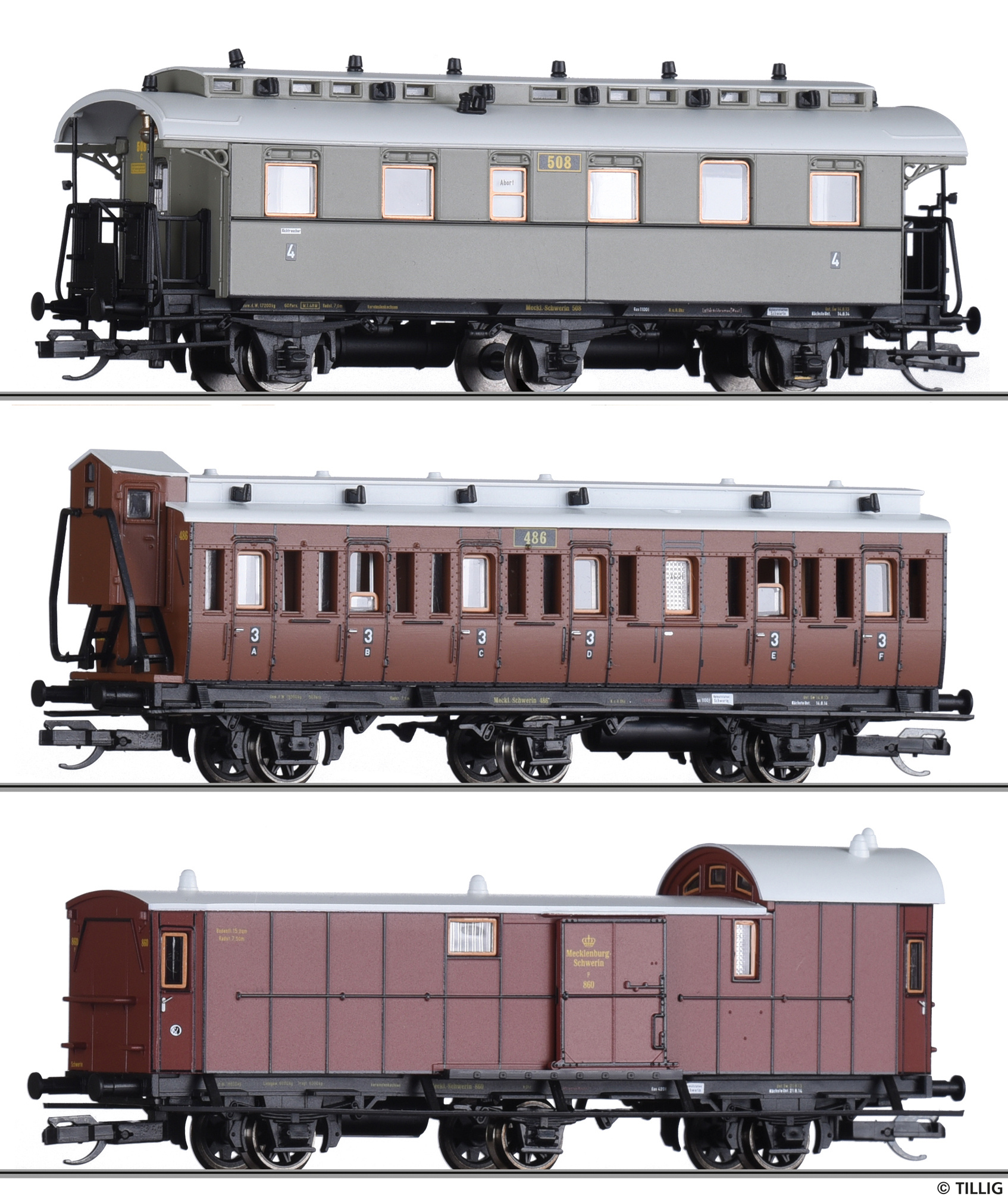| set dvou osobních a zavazadlového vozu „Mecklenburgischer Reisezug“ |