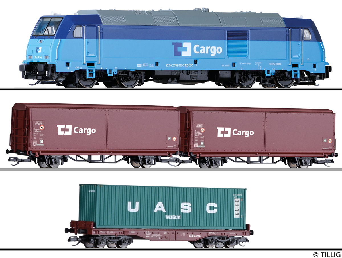 | dieselová lokomotiva v barevném schematu „ČD Cargo“ |