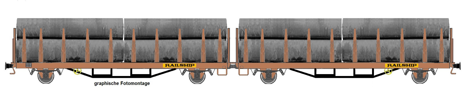 dvojdílný plošinový nákladní vůz s nákladem ocelových rour