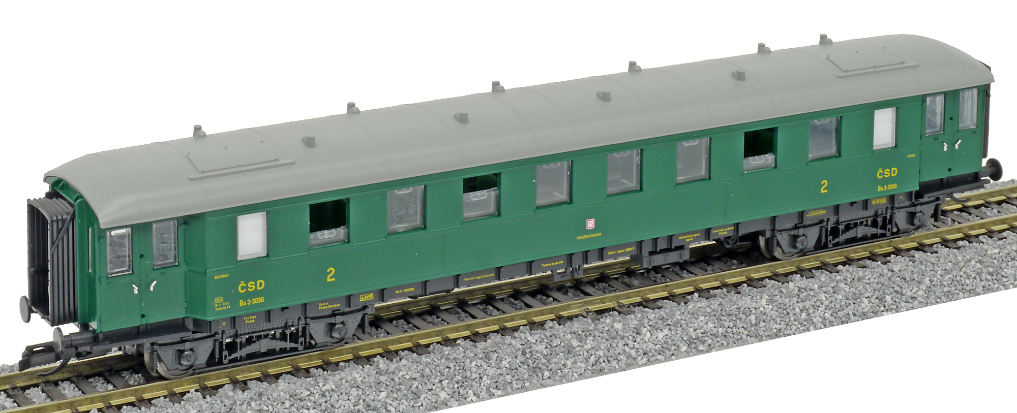| osobní vůz zelený s šedou střechou 2. tř. |