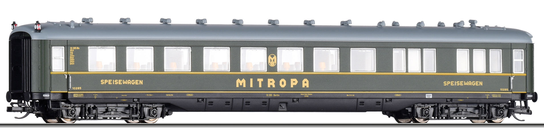 | jídelní vůz zelený s šedou střechou „MITROPA“ |