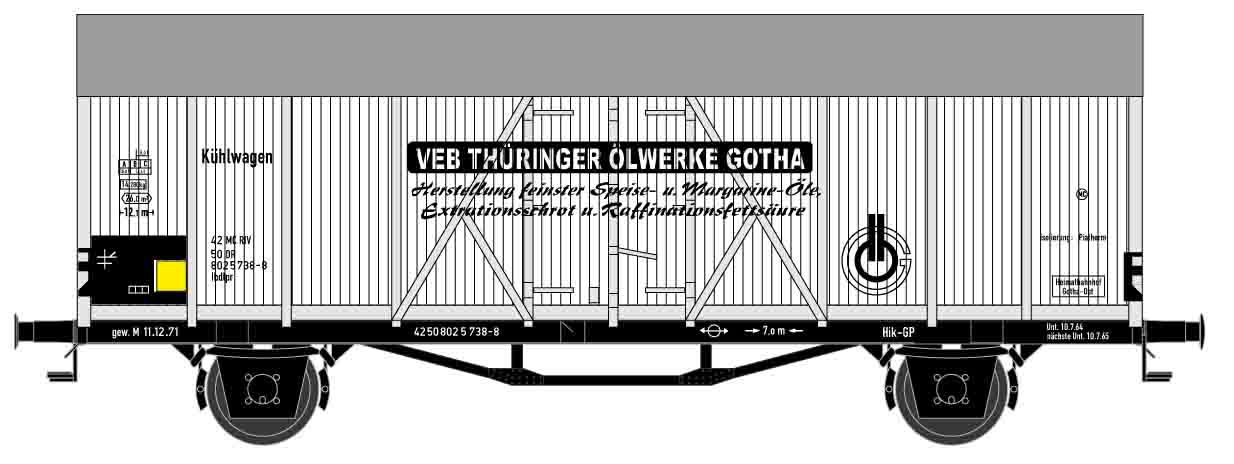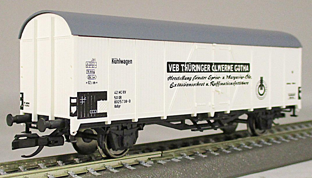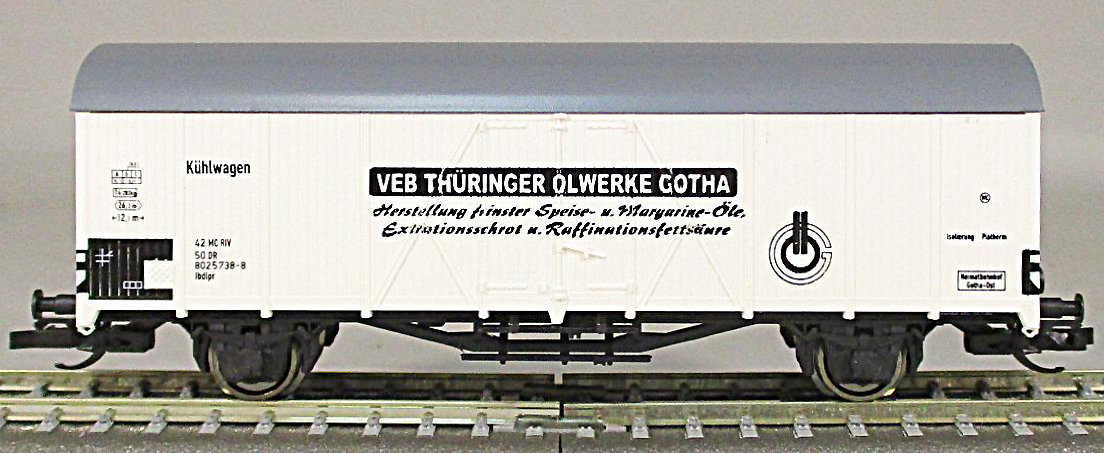 | chladící vůz bílý s šedou střechou „VEB THÜRINGEN ÖLWERKE GOTHA” |