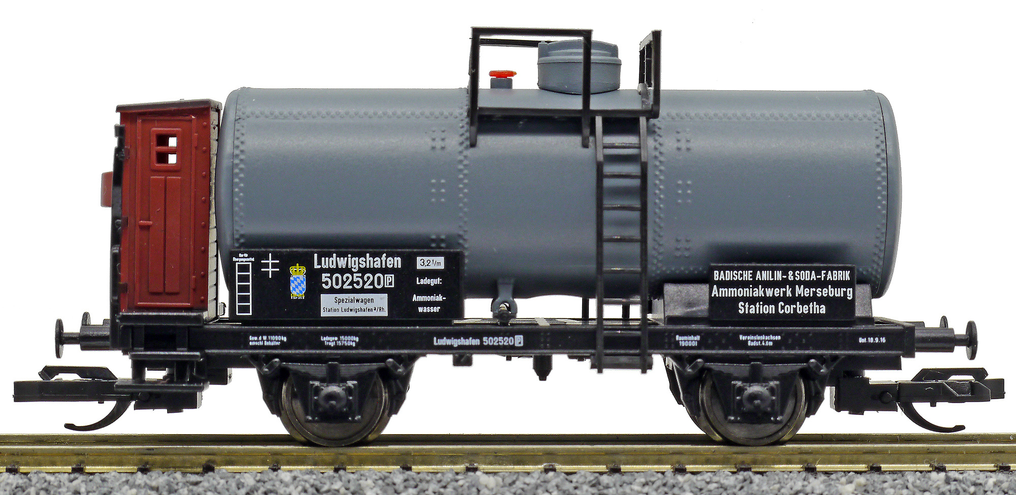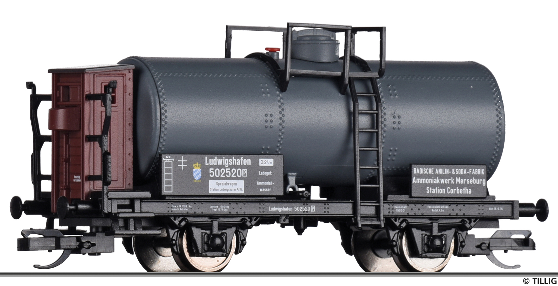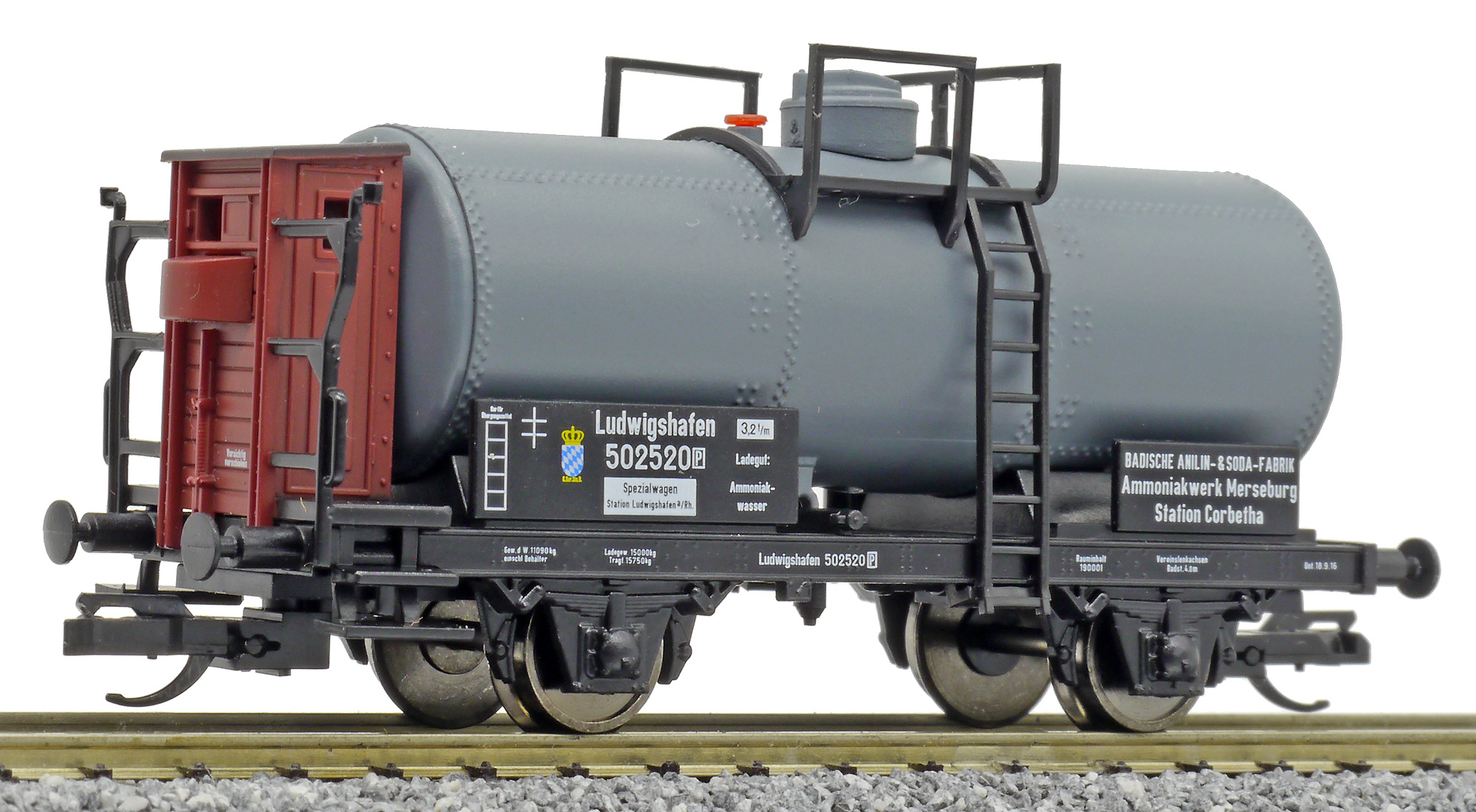 | kotlový vůz tmavý s brzdařskou budkou „Badische Anilin-Sodafabrik, Werk Merseburg“ |