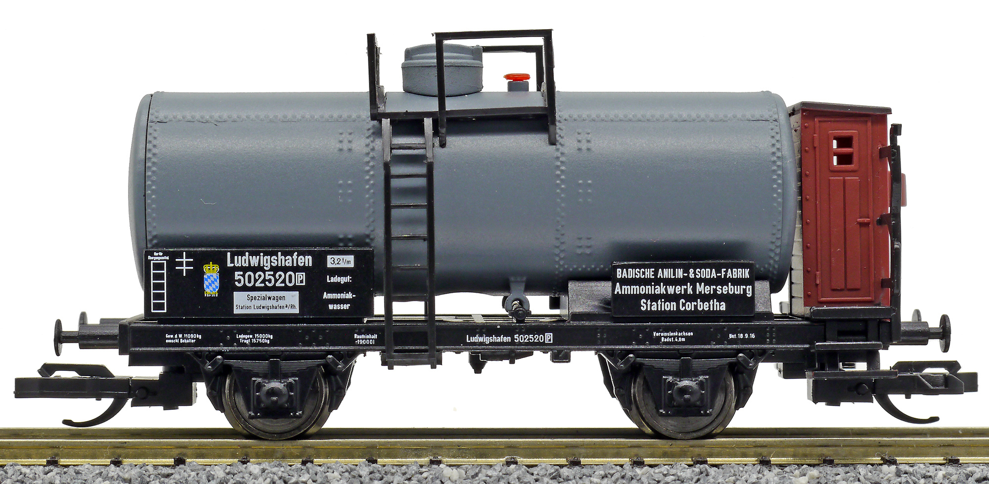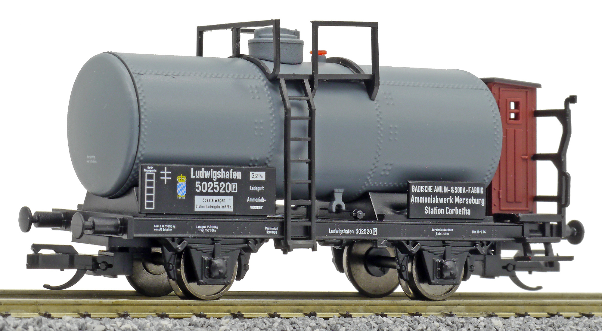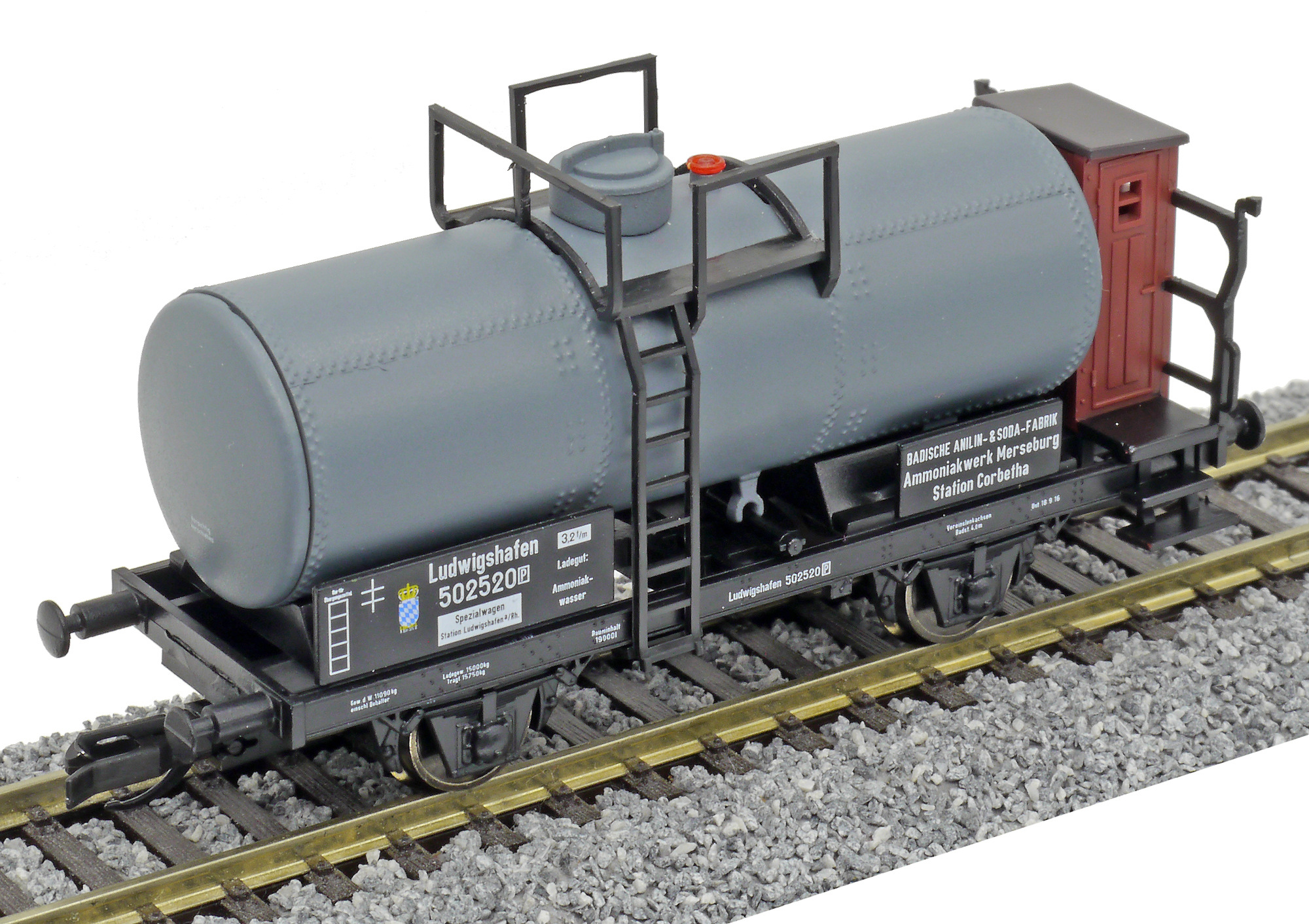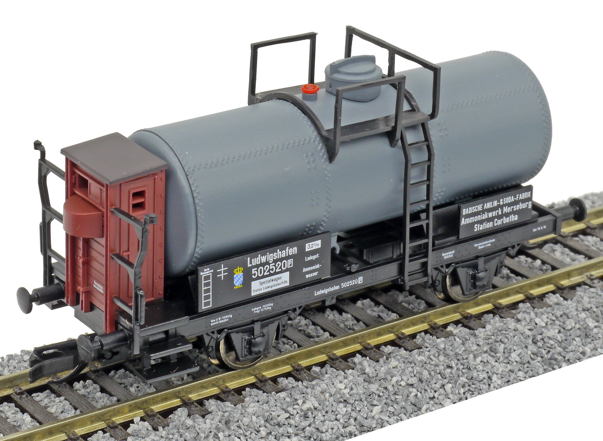 | kotlový vůz tmavý s brzdařskou budkou „Badische Anilin-Sodafabrik, Werk Merseburg“ |