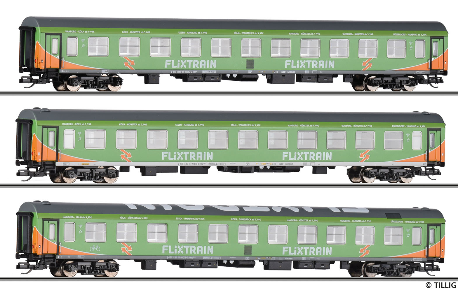 | set tří rychlíkových vozů „FLIXTRAIN“ |