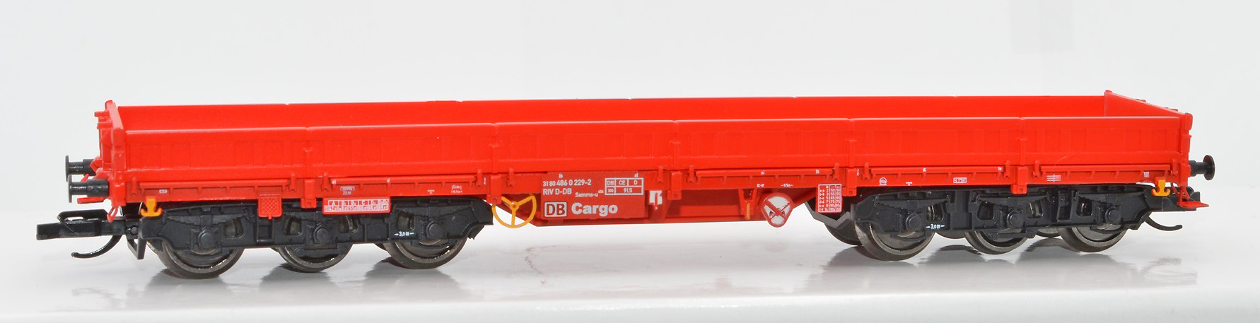 | nízkostěnný nákladní vůz červený s černým rámem |