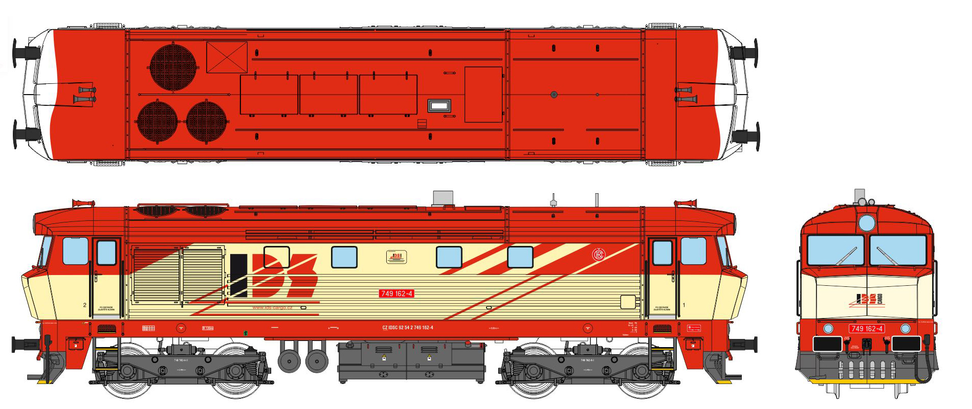 | dieselová lokomotiva v barevném schematu „IDS“ |