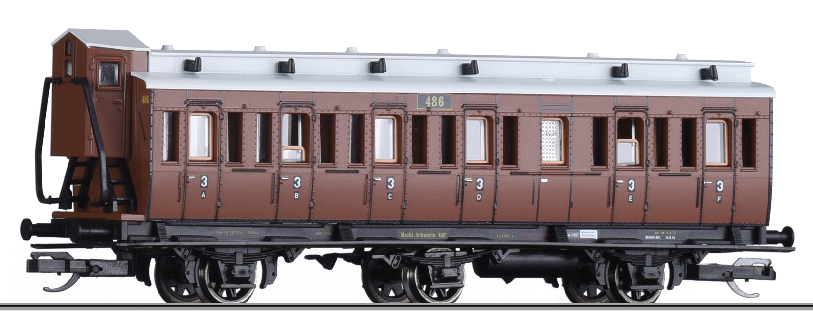 | oddílový osobní vůz červenohnědý se světle šedou střechou 3. tř. |