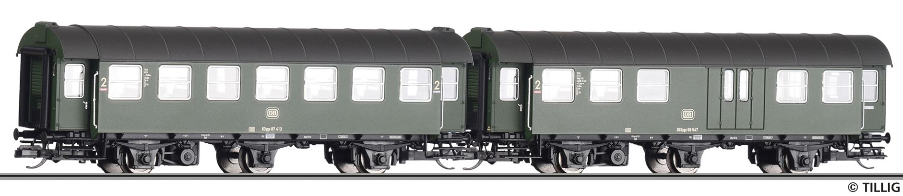 Popis   osobní vůz tmavě zelený s černou střechou 2. tř. se zavazadlovým oddílem