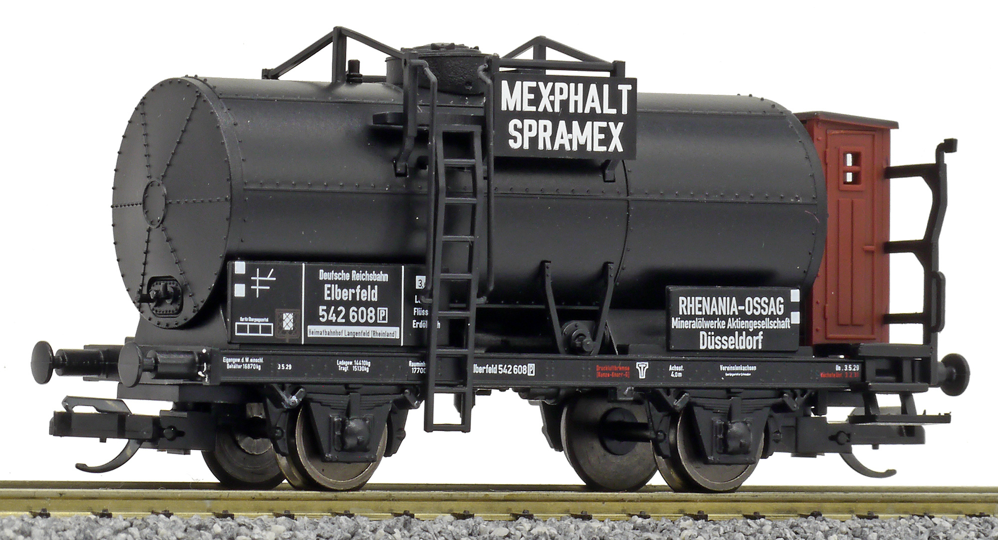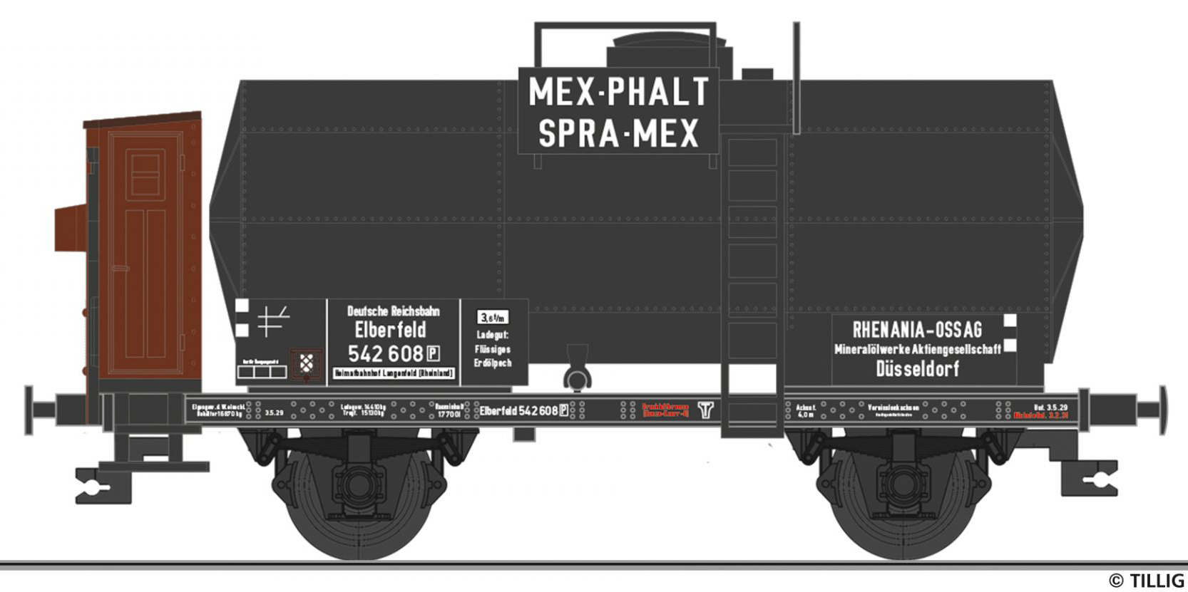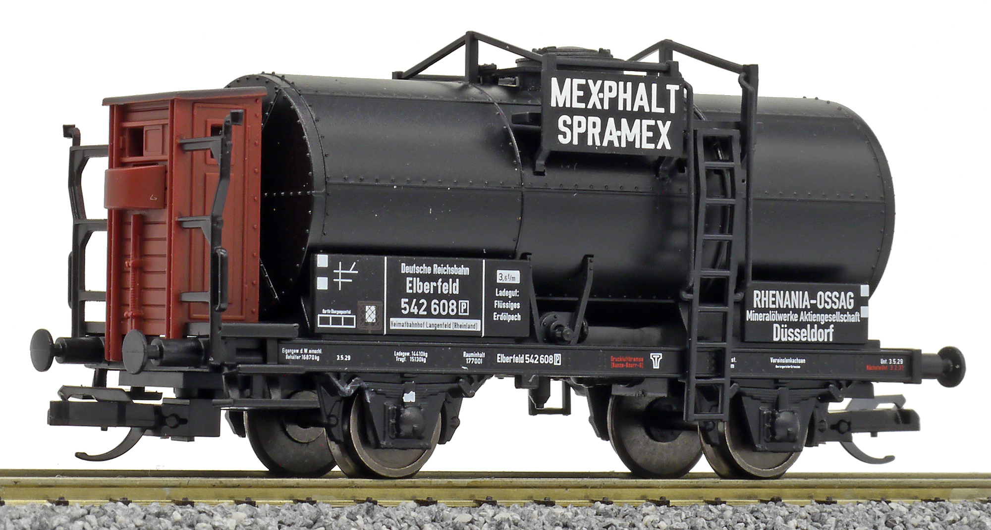 | kotlový vůz tmavý s brzdařskou budkou „MEXPHALT SPRAMEX“ |