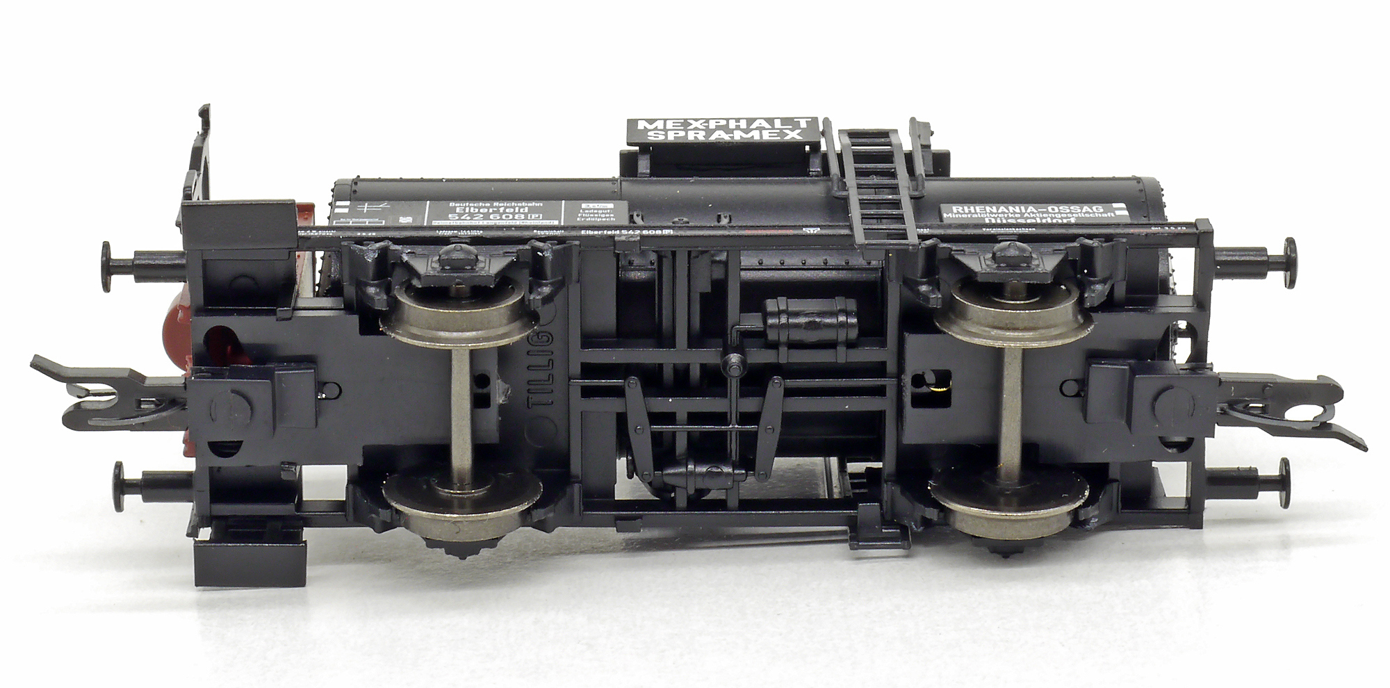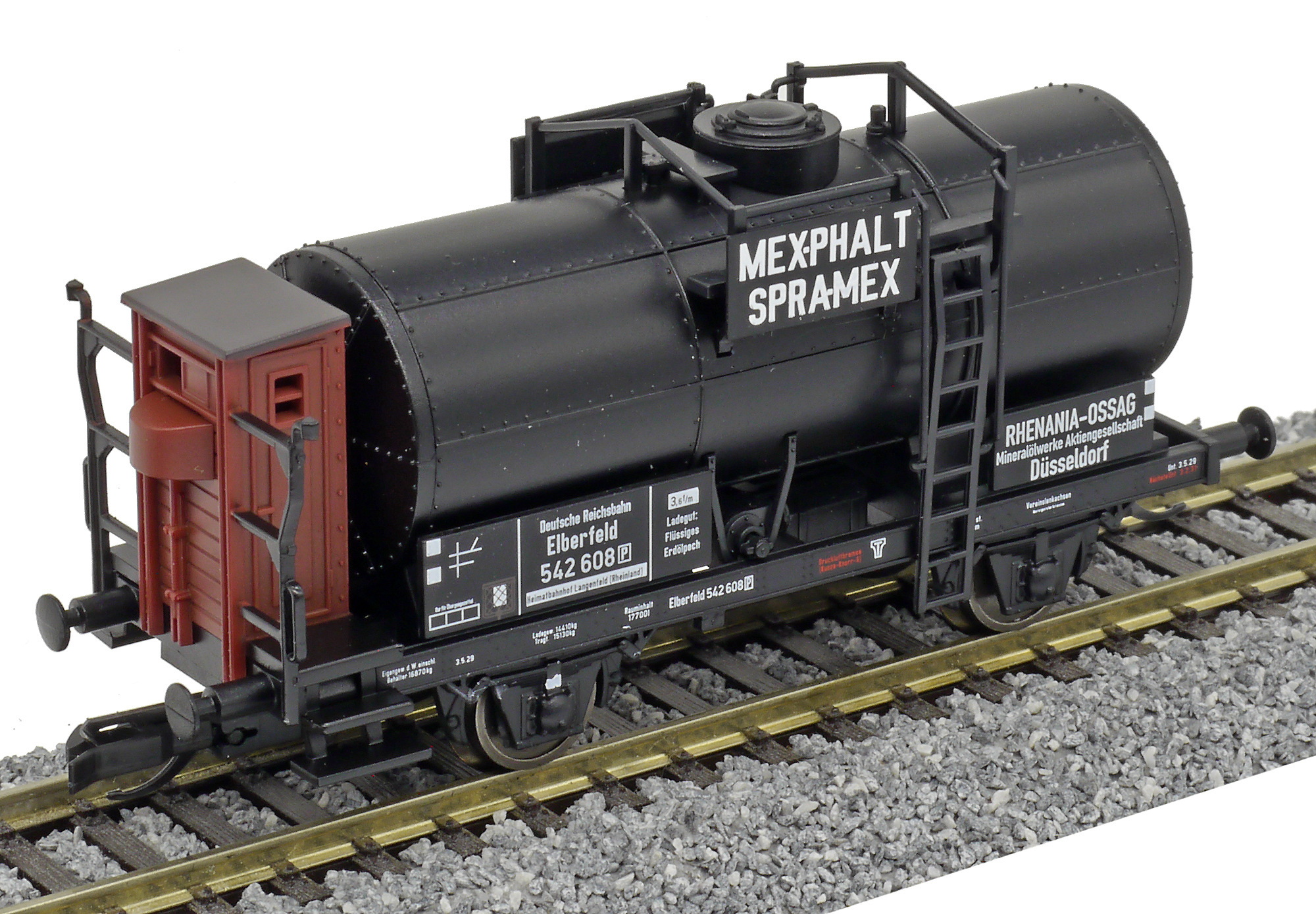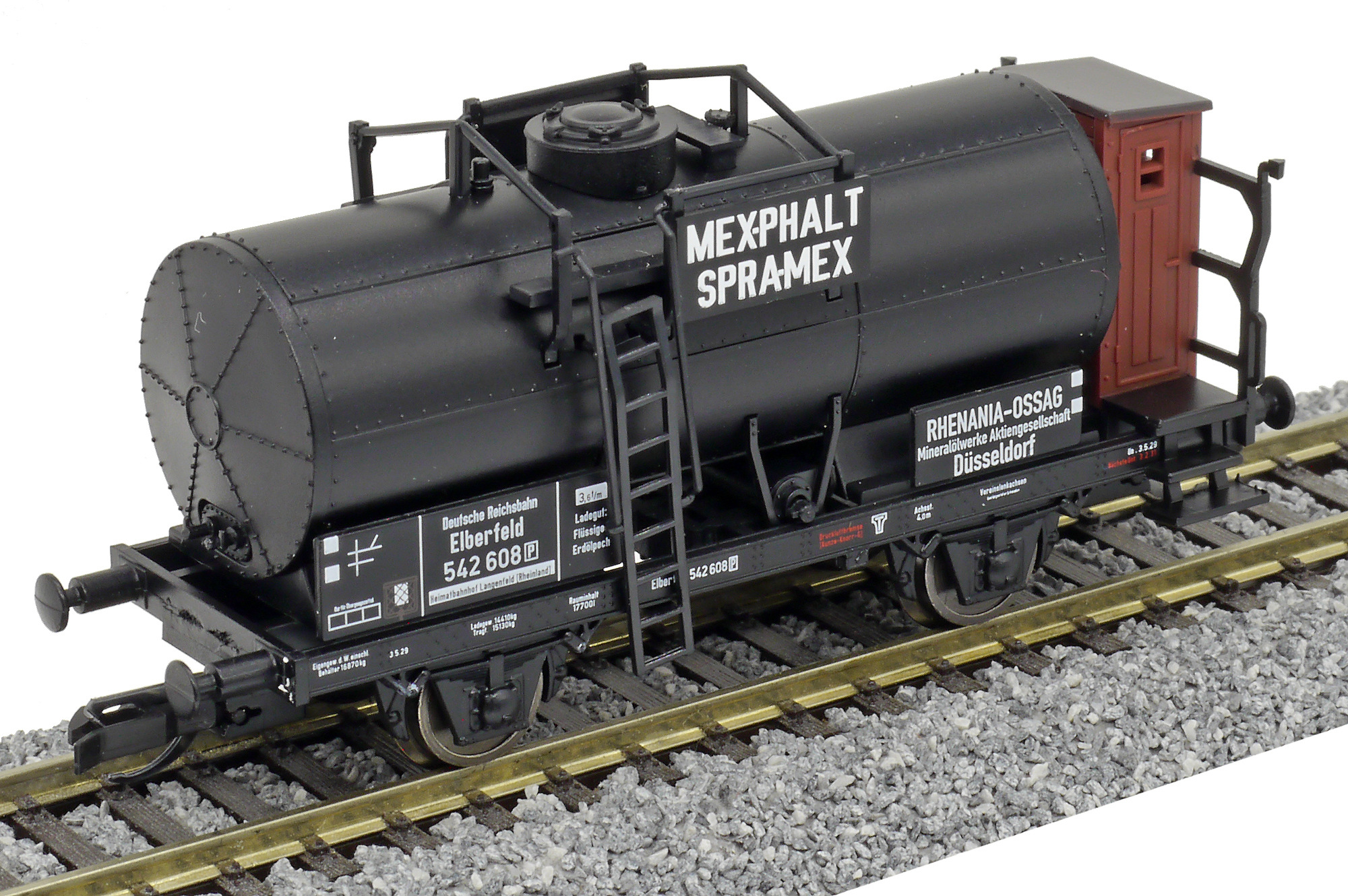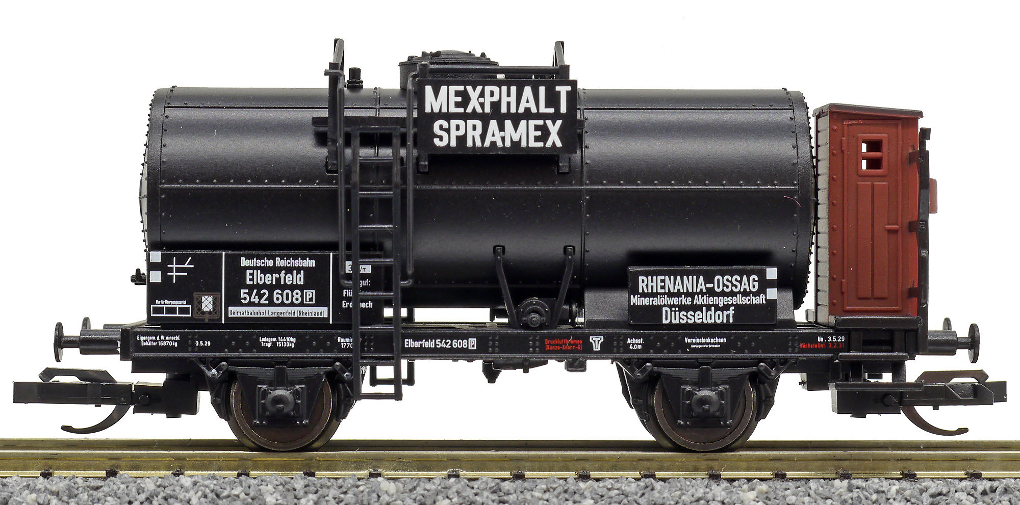 | kotlový vůz tmavý s brzdařskou budkou „MEXPHALT SPRAMEX“ |